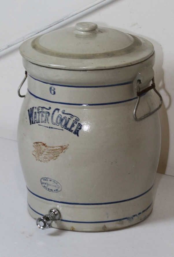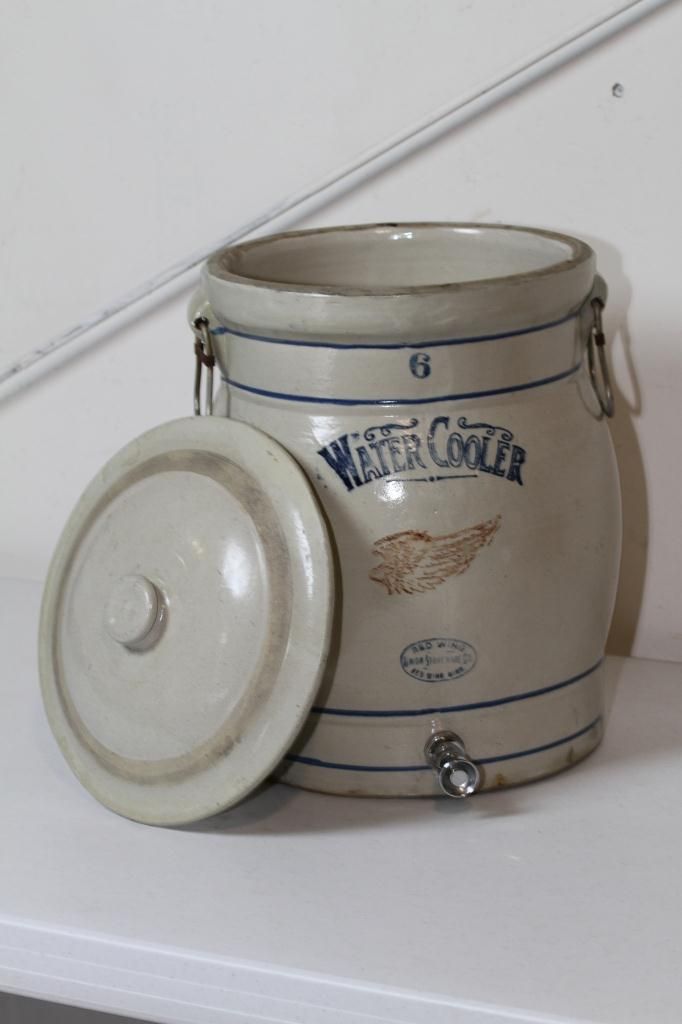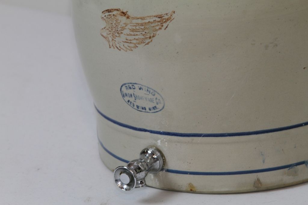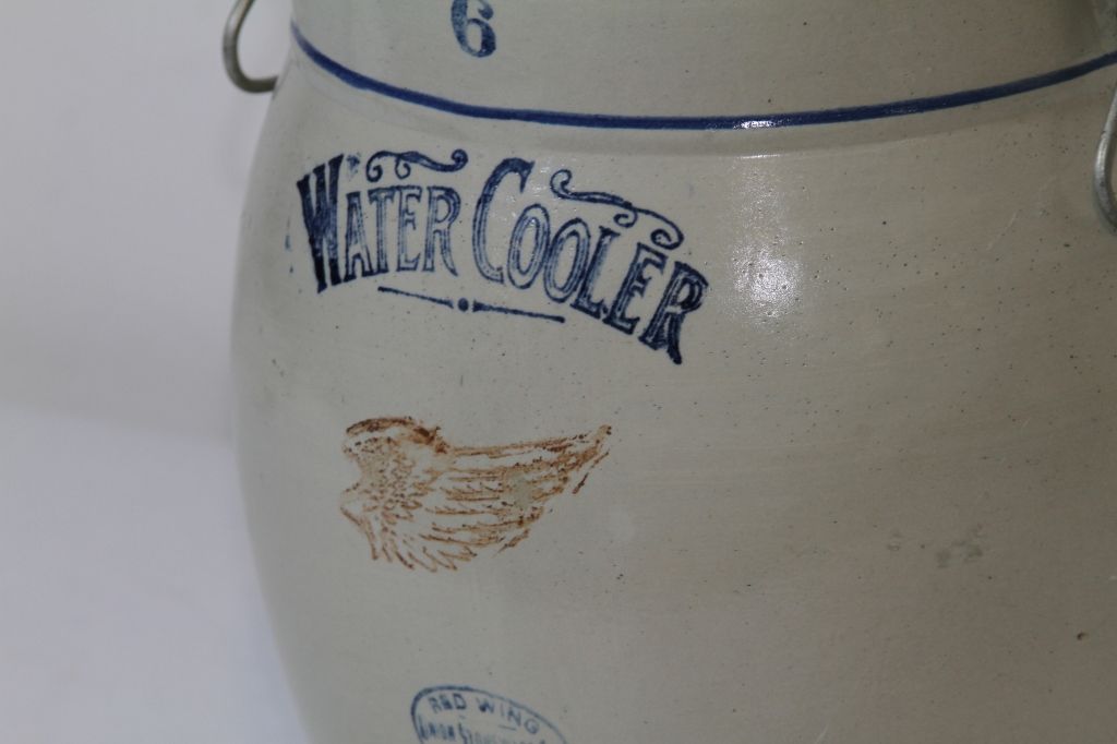 #6 Red Wing Water Cooler Red Wing Union Stoneware Co. Redwing, Minn. 6 Gallon Water Cooler in Excellent condition: including both handles, no cracks or chips, rings like a bell, paint looks great, has lid with no cracks, and has spigot. Rare #6 Red Wing Water Cooler.