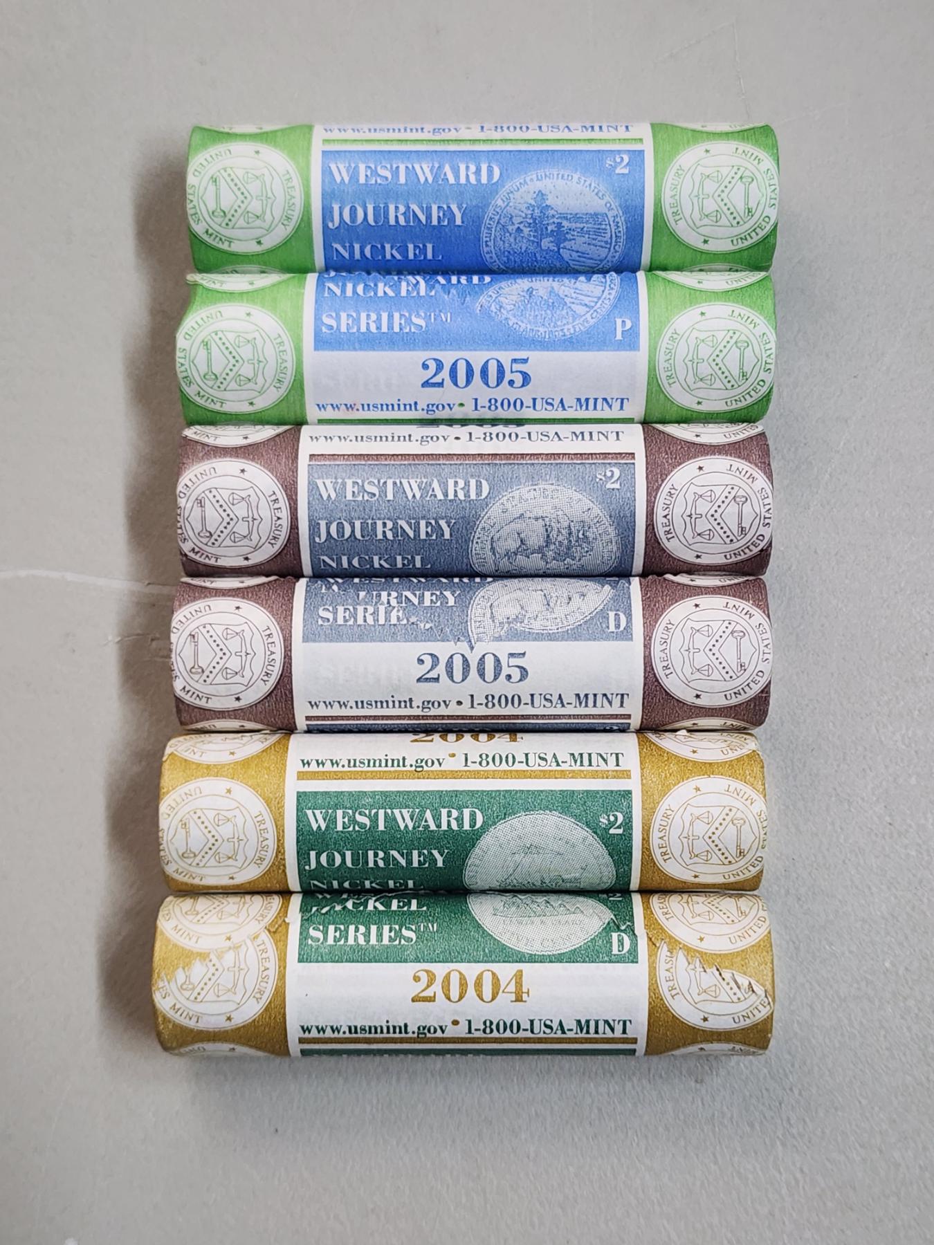 (6) Rolls of 2004-2005 Westward Journey Jefferson Nickels FV: $12.00