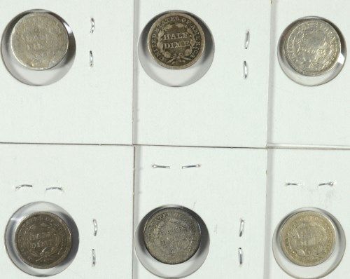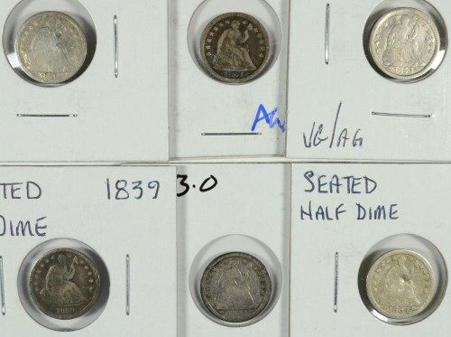 6 SEATED HALF DIMES (39,40,51,53,53-O,54) AG/GOOD