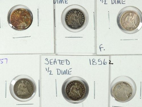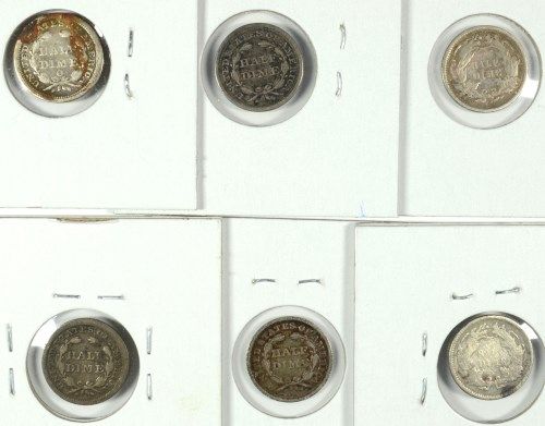 6 SEATED HALF DIMES (56,57,57-O,58,71,72) AG/FINE