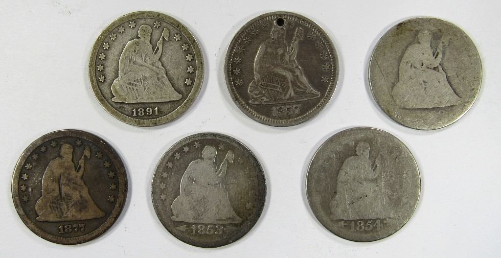 6-SEATED QUARTERS, MIXED DATES & GRADES
