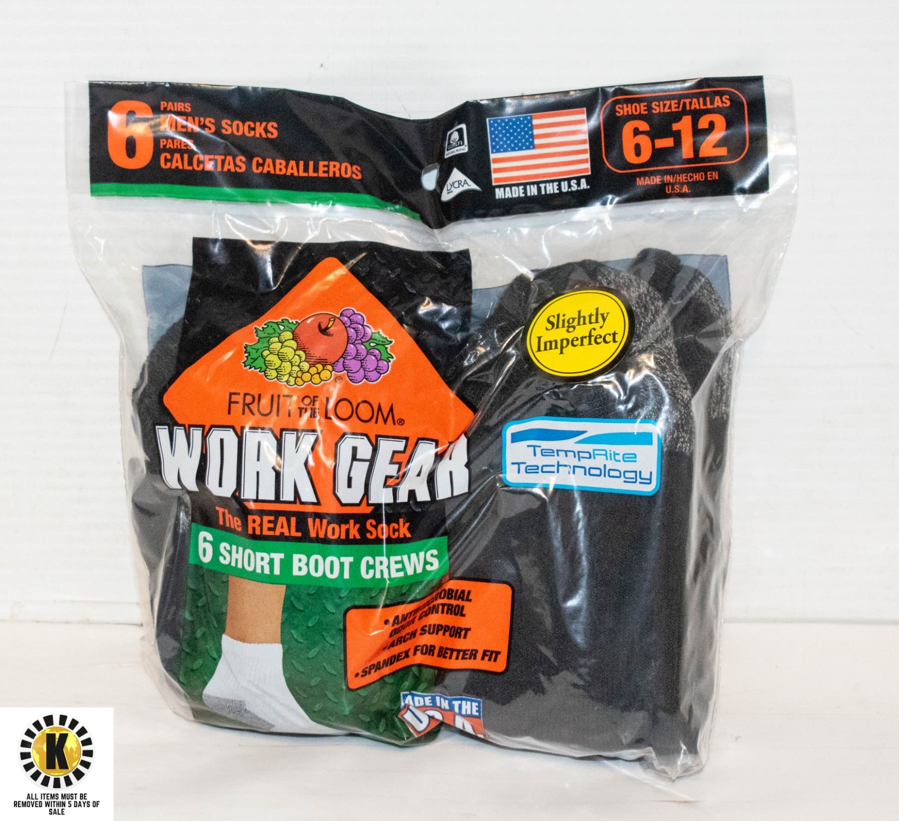 6 SHORT BOOT CREW SOCKS,SIZE 6-12,FRUIT OF THE