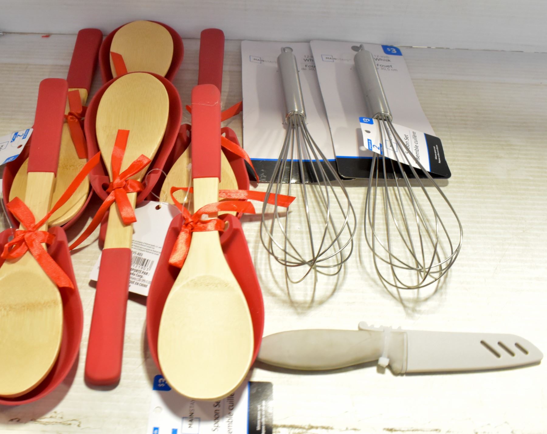 6 SILICONE SPOON RESTS, 6 WOODEN SPOONS, 1 PAIRING