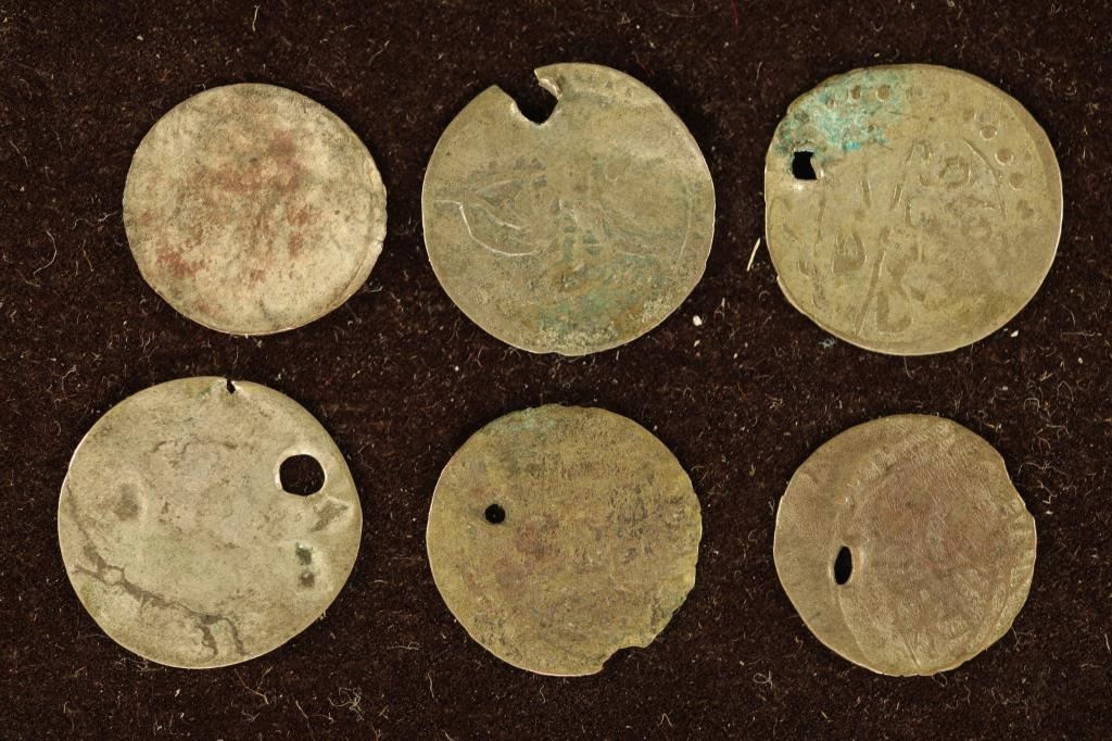 BELLY DANCER COINS FROM THE 1700'S - 1800'S FIVE OF THEM WITH HOLES
