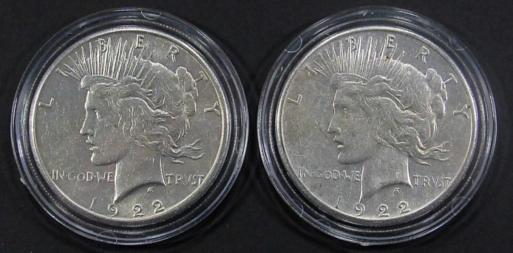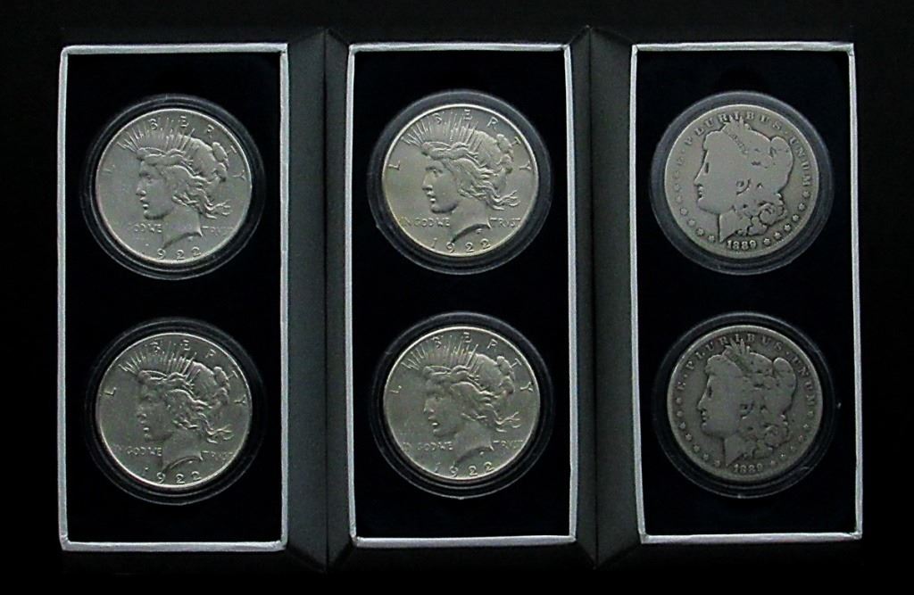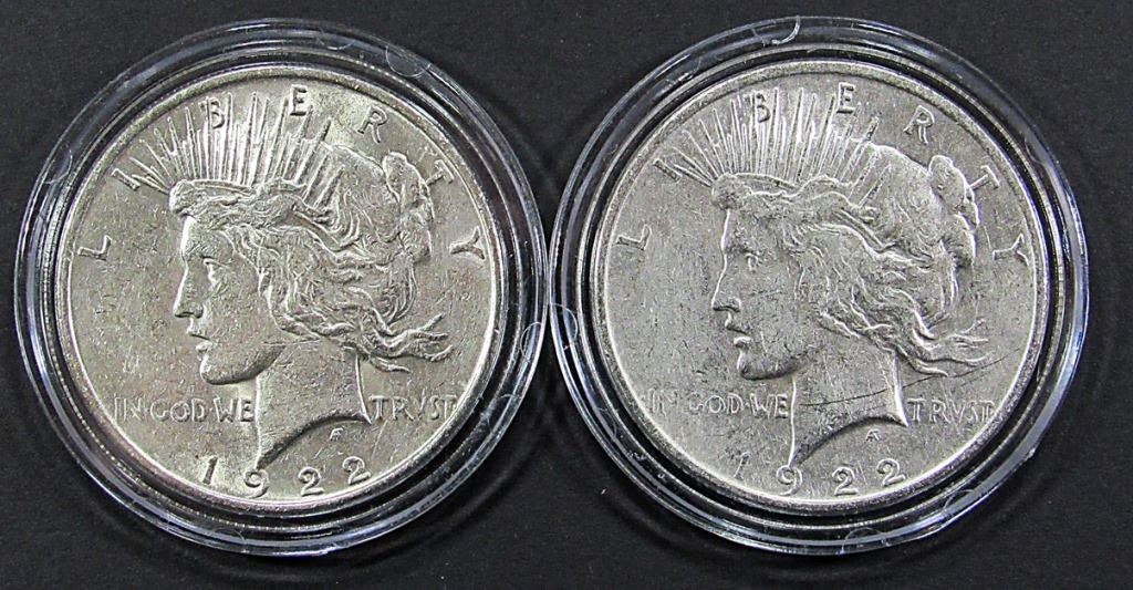 4-1922 PEACE, 2-1889-O MORGAN