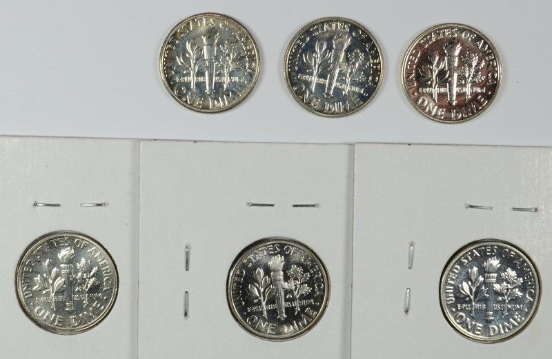 (6) SILVER PROOF ROOSEVELT DIMES (50, 51, 55, 56, 57, 58)