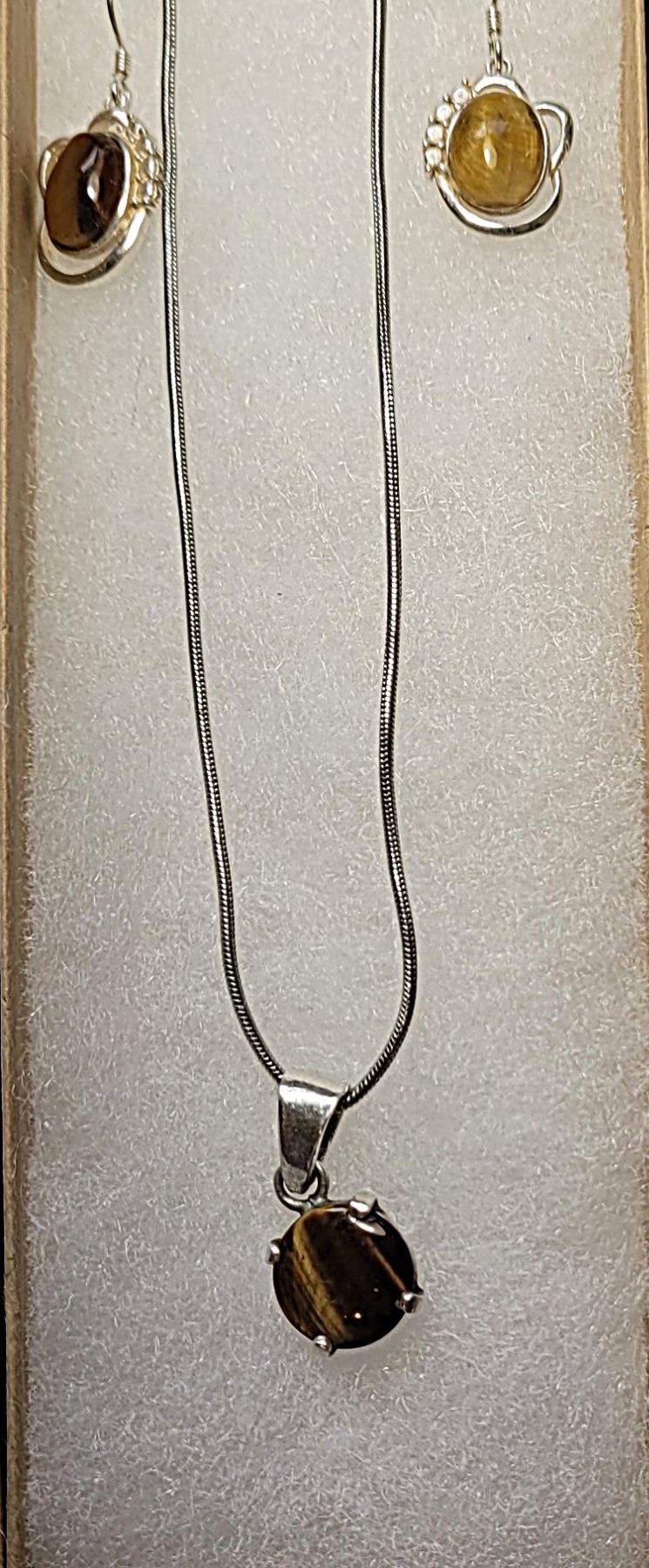 EARRINGS AND MATCHING ROUND PENDANT ON 16" CHAIN WITH 3.5" EXTENDER. JEWELERY
