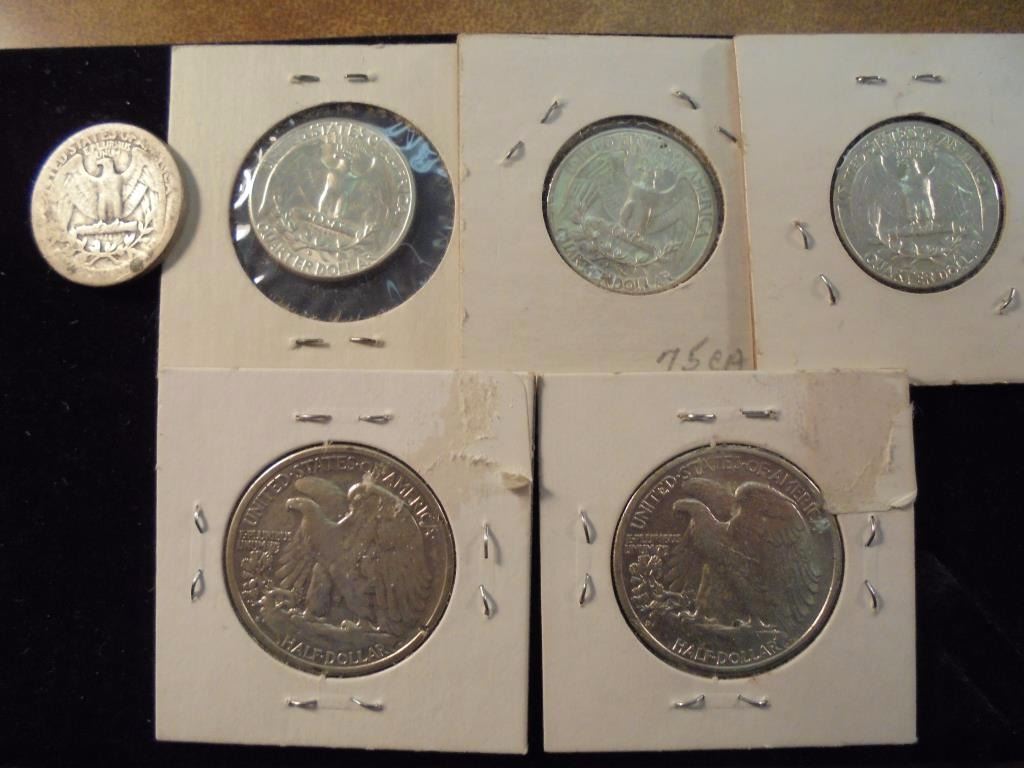 6 SILVER US COINS SEE DESCRIPTION 1936-S & 1943-D WALKING LIBERTY HALF DOLLARS, AND 1934, 1941-D, 19