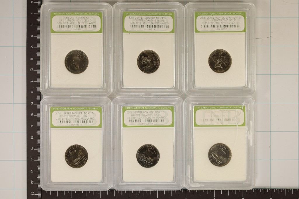 3-2004-D KEELBOAT NICKEL GEM BU'S AND 1 MS70 AND 2-2005-D OCEAN IN VIEW NICKELS BU'S. THIS IS NOT FROM A REPUTABLE GRADING SERVICE, USE YOUR OWN JUDGEMENT, BIDALOT CANNOT GUARANTEE THE GRADE.