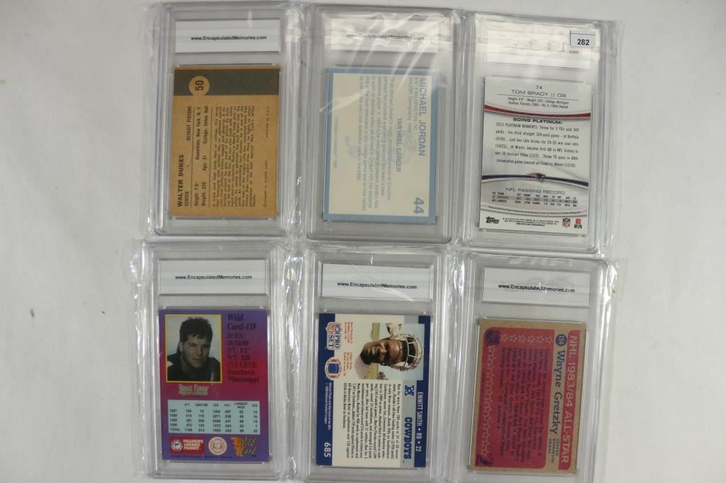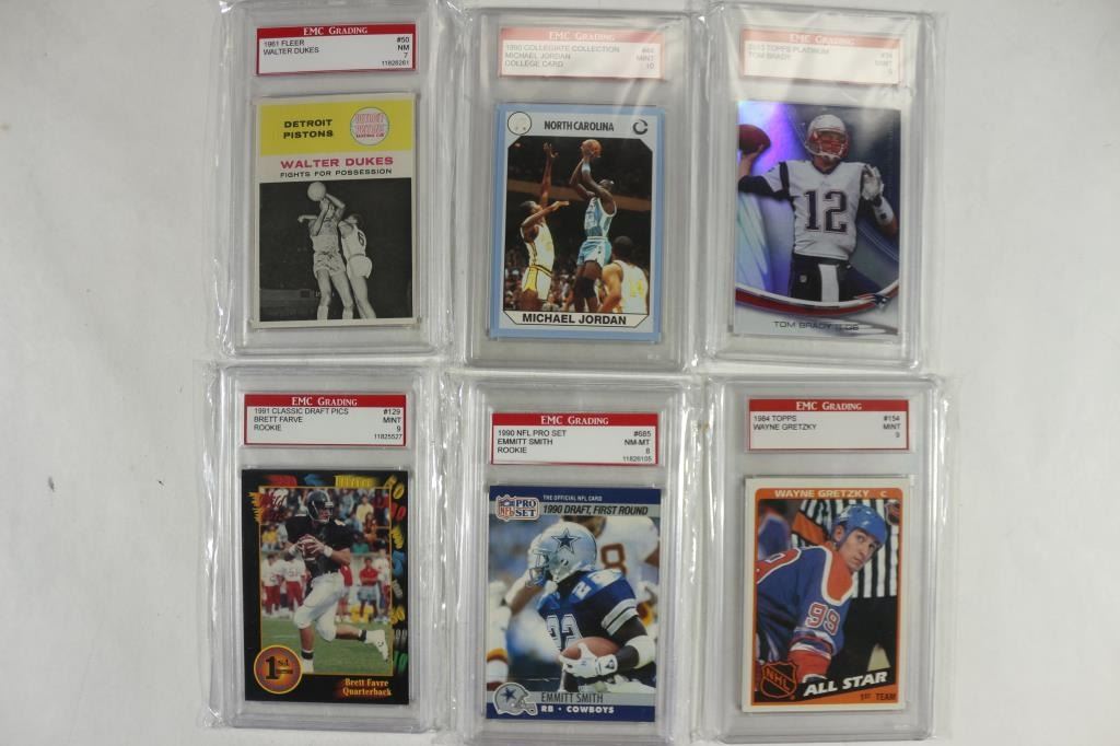 1961 FLEER WALTER DUKES #50 NEAR MINT 7, 1990 COLLEGIATE COLLECTION MICHAEL JORDON #44 COLLEGE CARD MINT 10, 2013 TOPPS PLATINUM TOM BRADY #74 MINT 9, 1991 CLASSIC DRAFT PICKS BRETT FARVE #129 ROOKIE MINT 9, 1990 NFL PRO