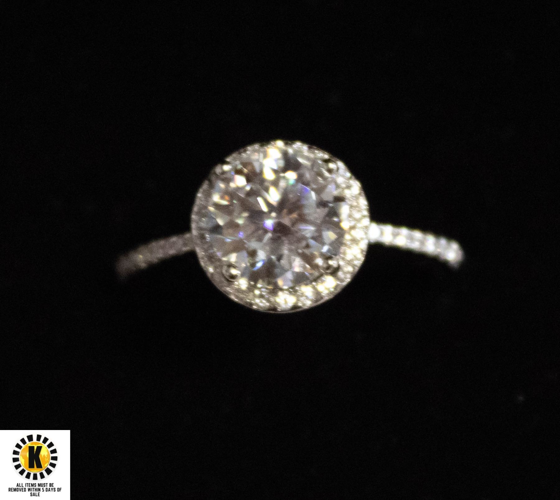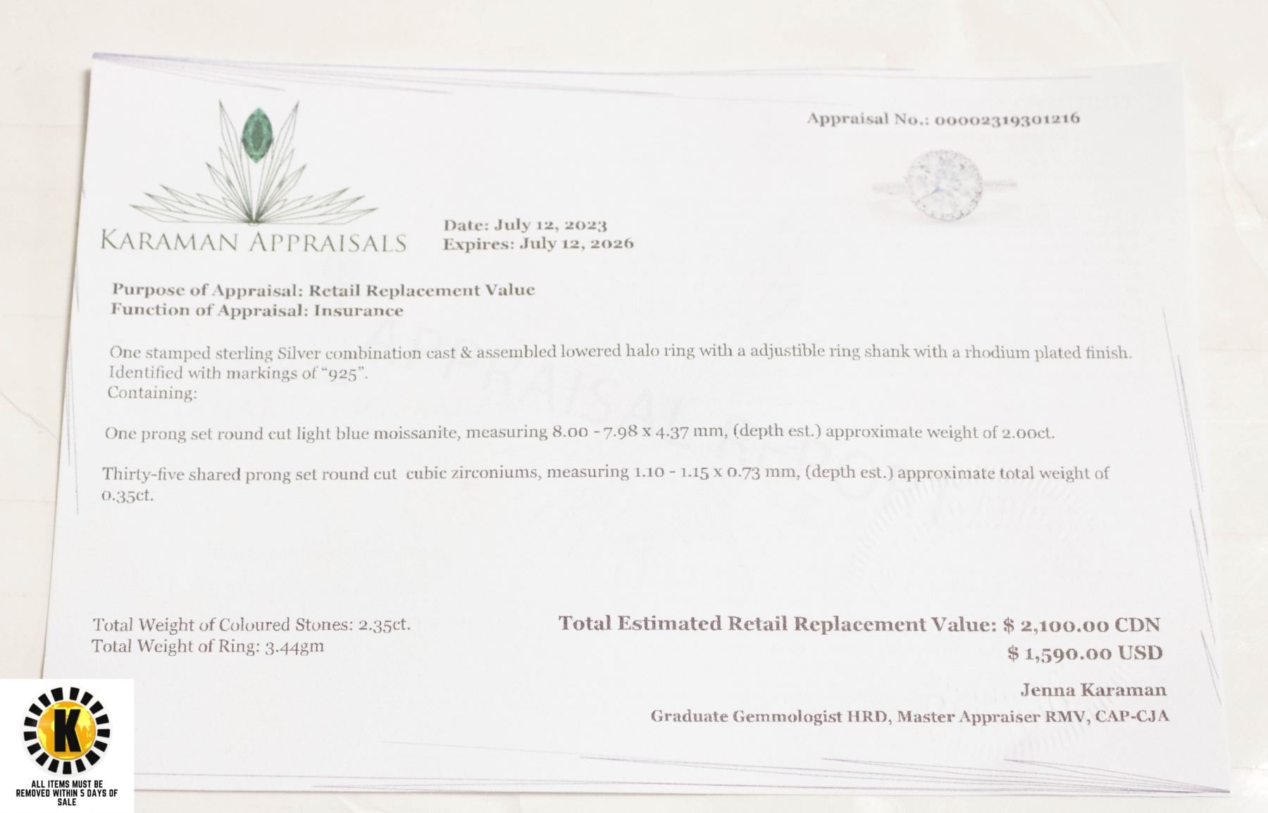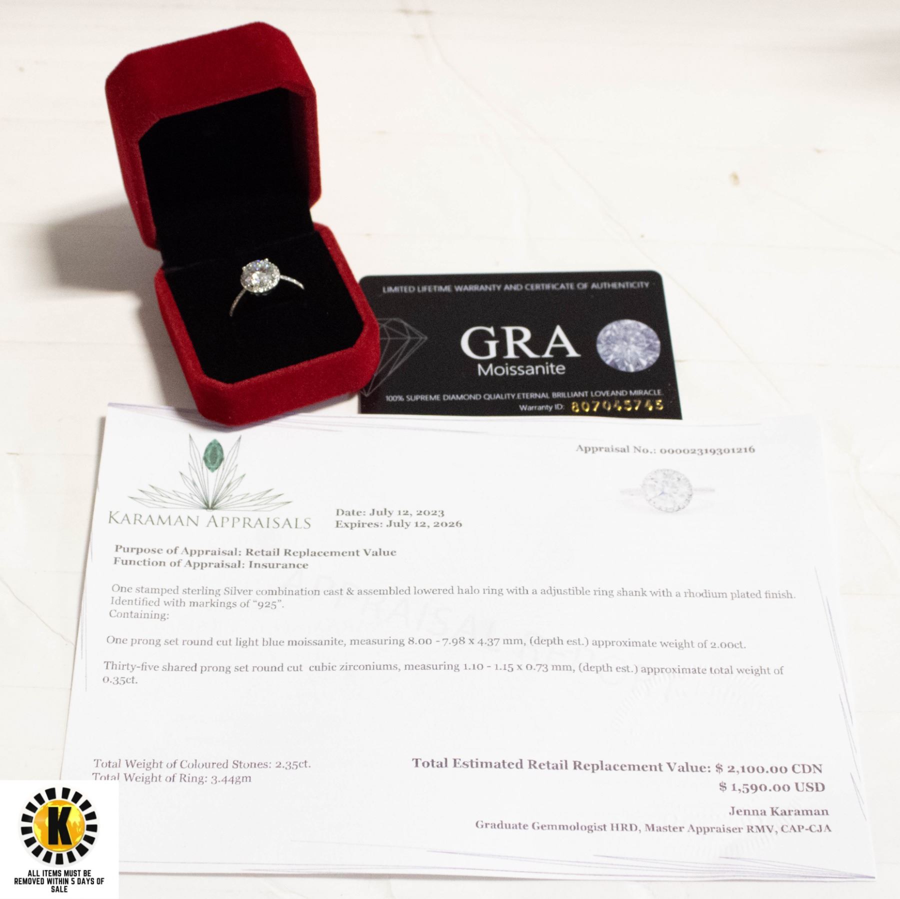 LIGHT BLUE SURROUNDED WITH HALO AND CLEAR CUBIC ZIRCONIA IN SHANK SIZE 7 GRA CERTIFIED APPRAISED RETAIL $2,100.00