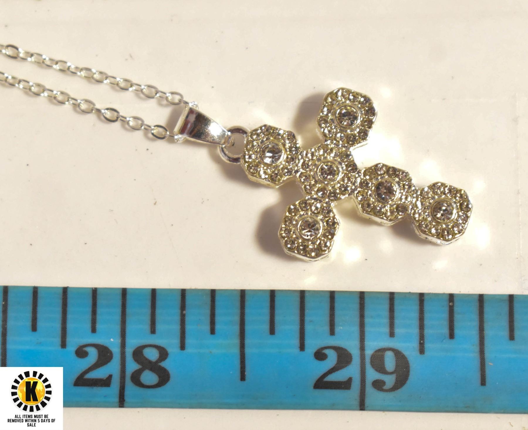 6 STONE CROSS PENDANT WITH ADJUSTABLE NECKLACE
