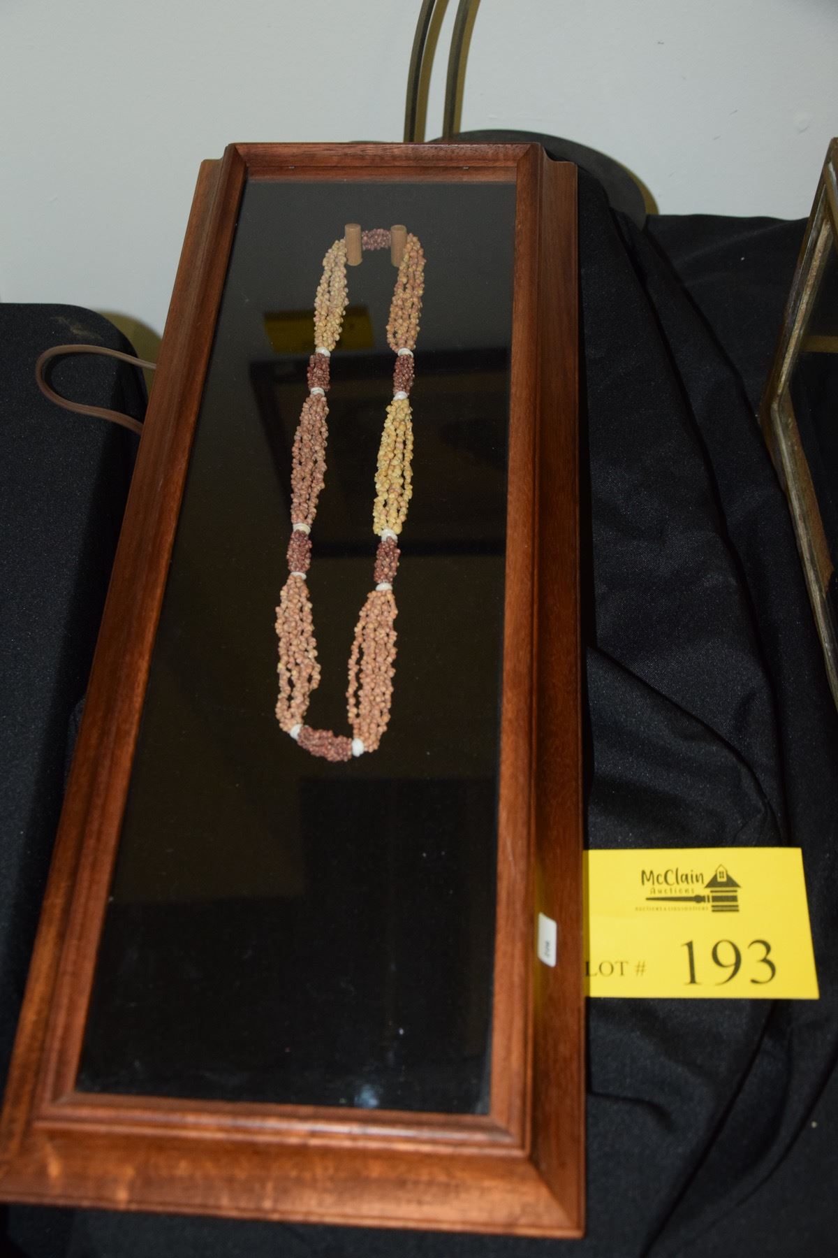6 STRAND KEHELELANI & PUKA SHELL "NIIHAU" LEI (MULTI COLOR) IN KOA SHADOW BOX DISPLAY