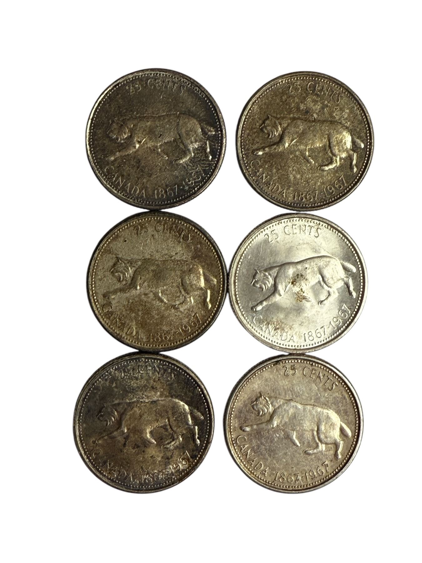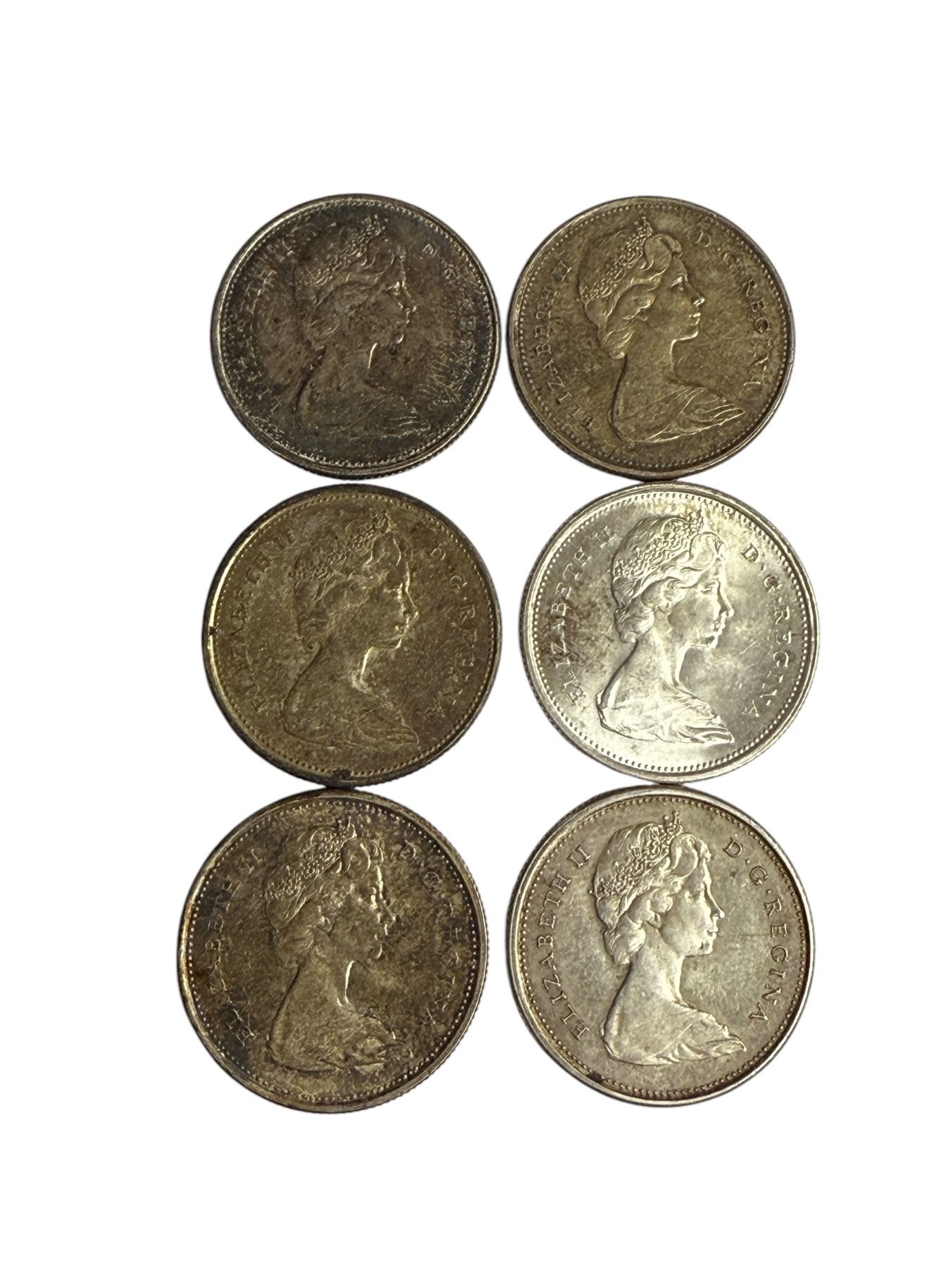 6 Silver Canadian Quarters