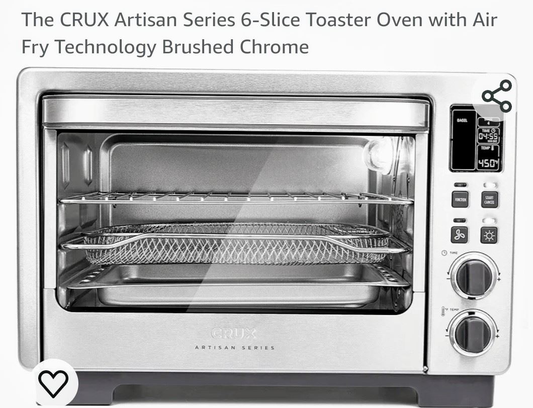 6-Slice capacity with air fry technology, brushed chrome finish, versatile and new.