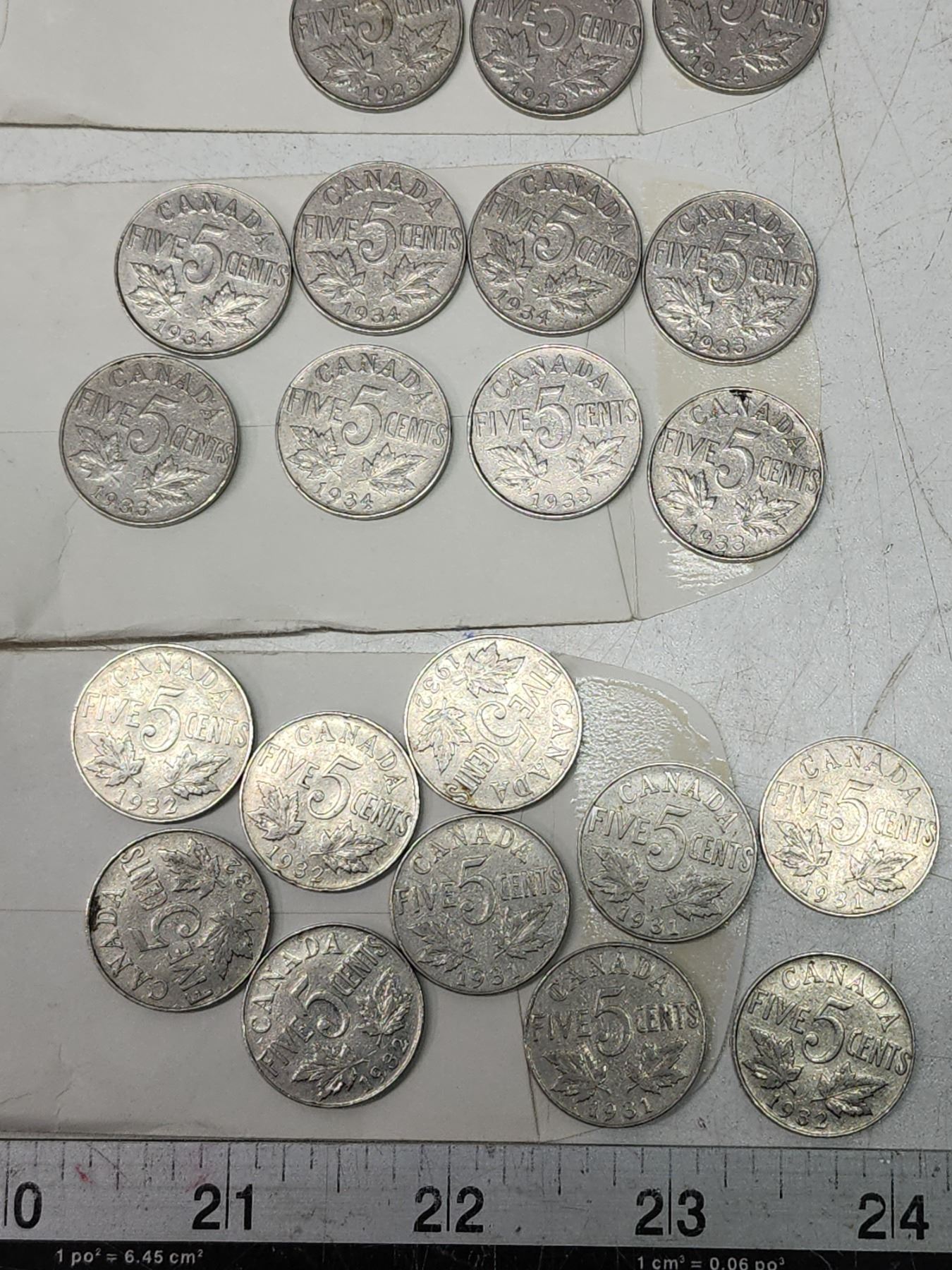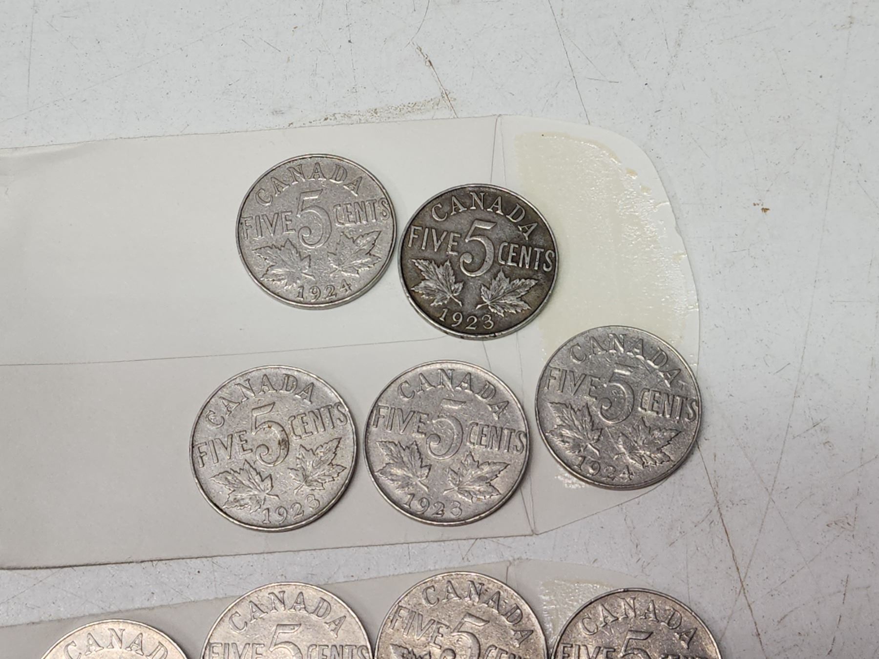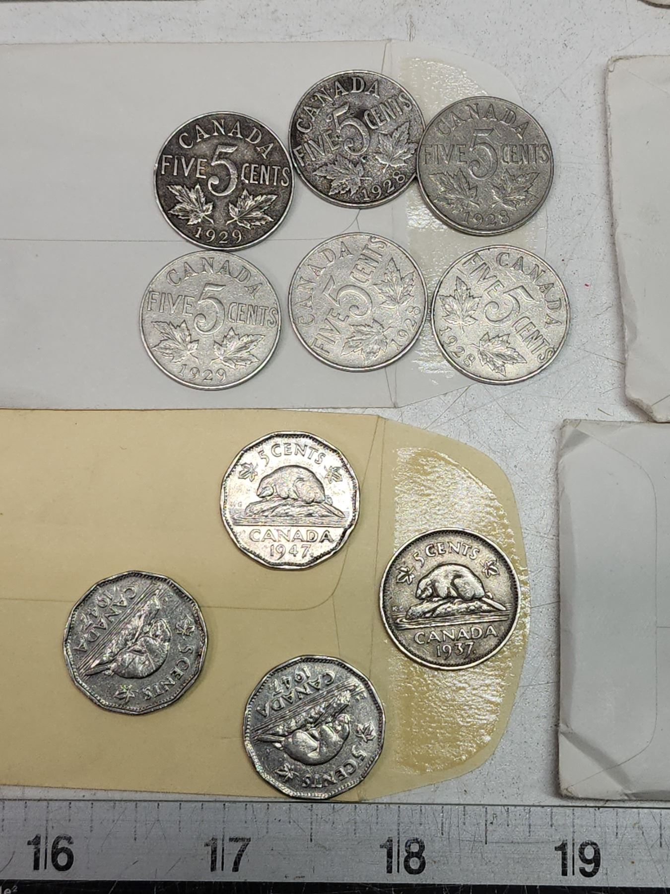 6 Small envelopes, w/ assorted Canadian 5 cent coins