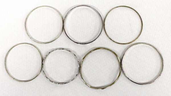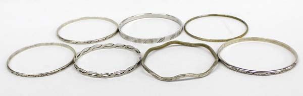 6 Sterling Silver Bangle Bracelets and 1 Monet Bangle, some Native American, largest measures 8'' x 1/8'', 75.12gtw