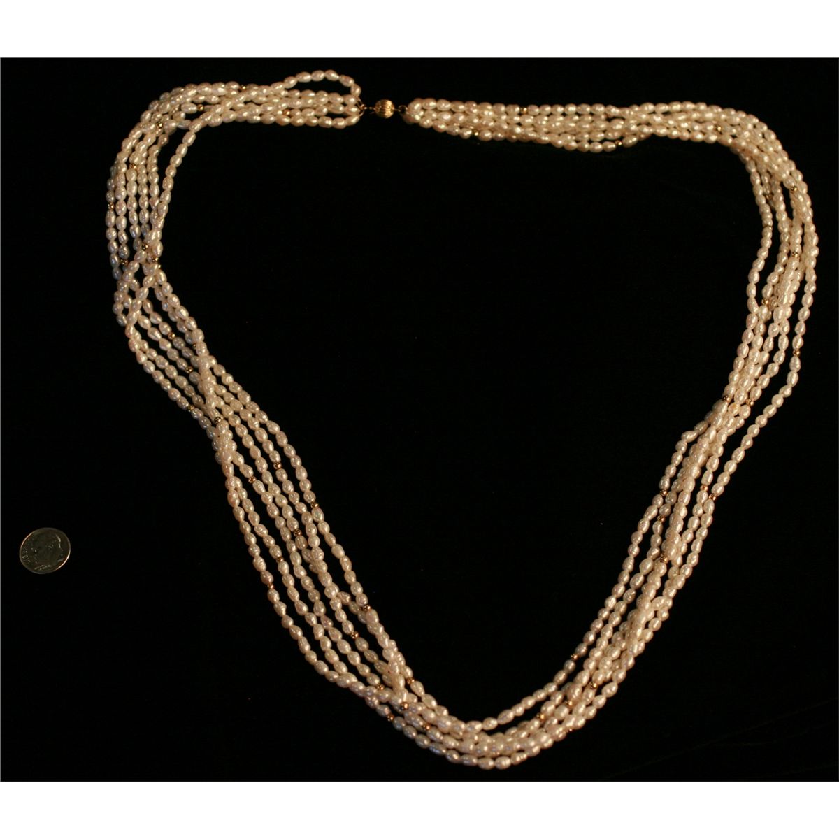 6 Strand Freshwater Pearls with 14k Clasp and Beads, 29" Long, -222024-