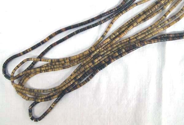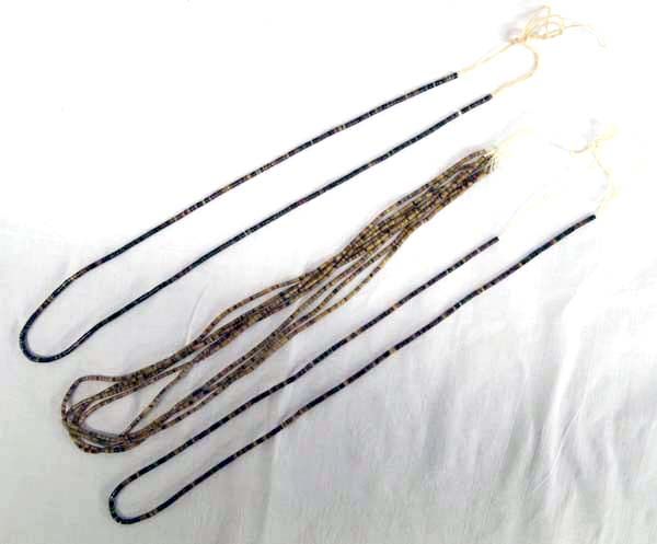 6 Strands Navajo Pen Shell Heishi Beads, longest strand measures 22'' end to end, the two longest strands are dark pin shell and the 4 others are light brown in color