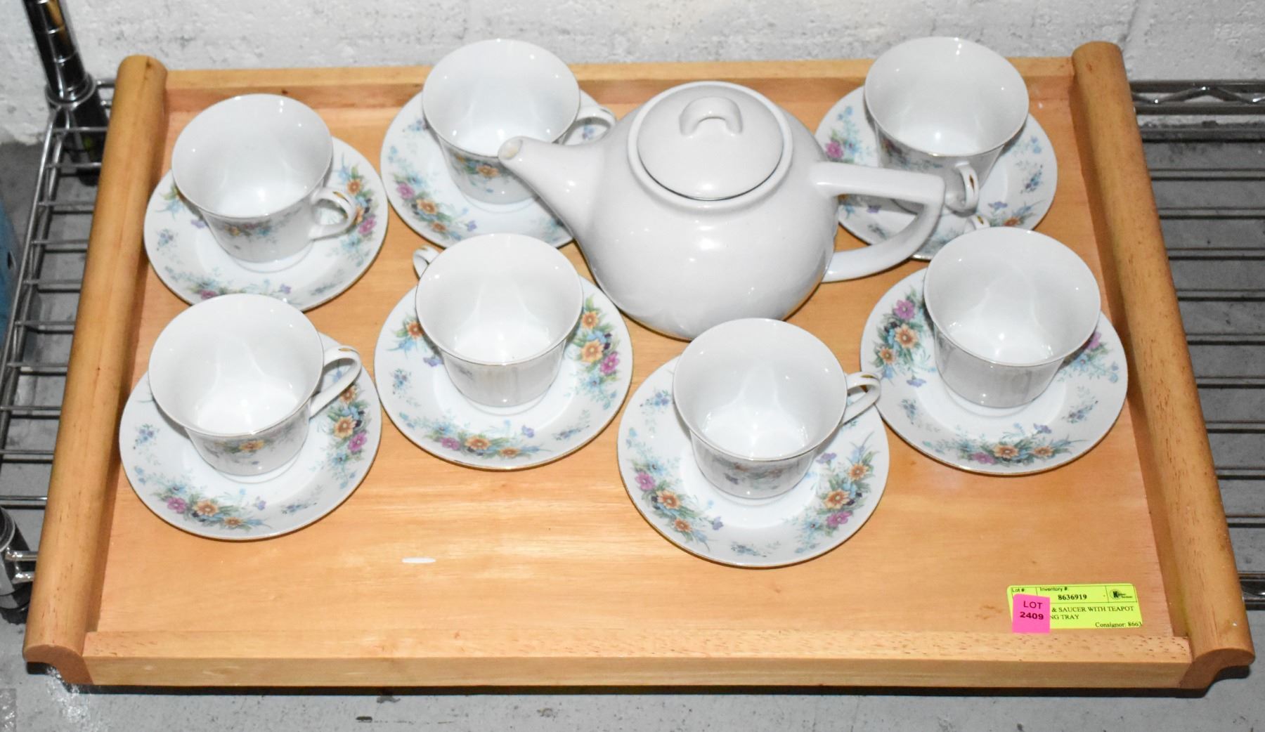 6 TEA CUP & SAUCER WITH TEAPOT ON SERVING TRAY