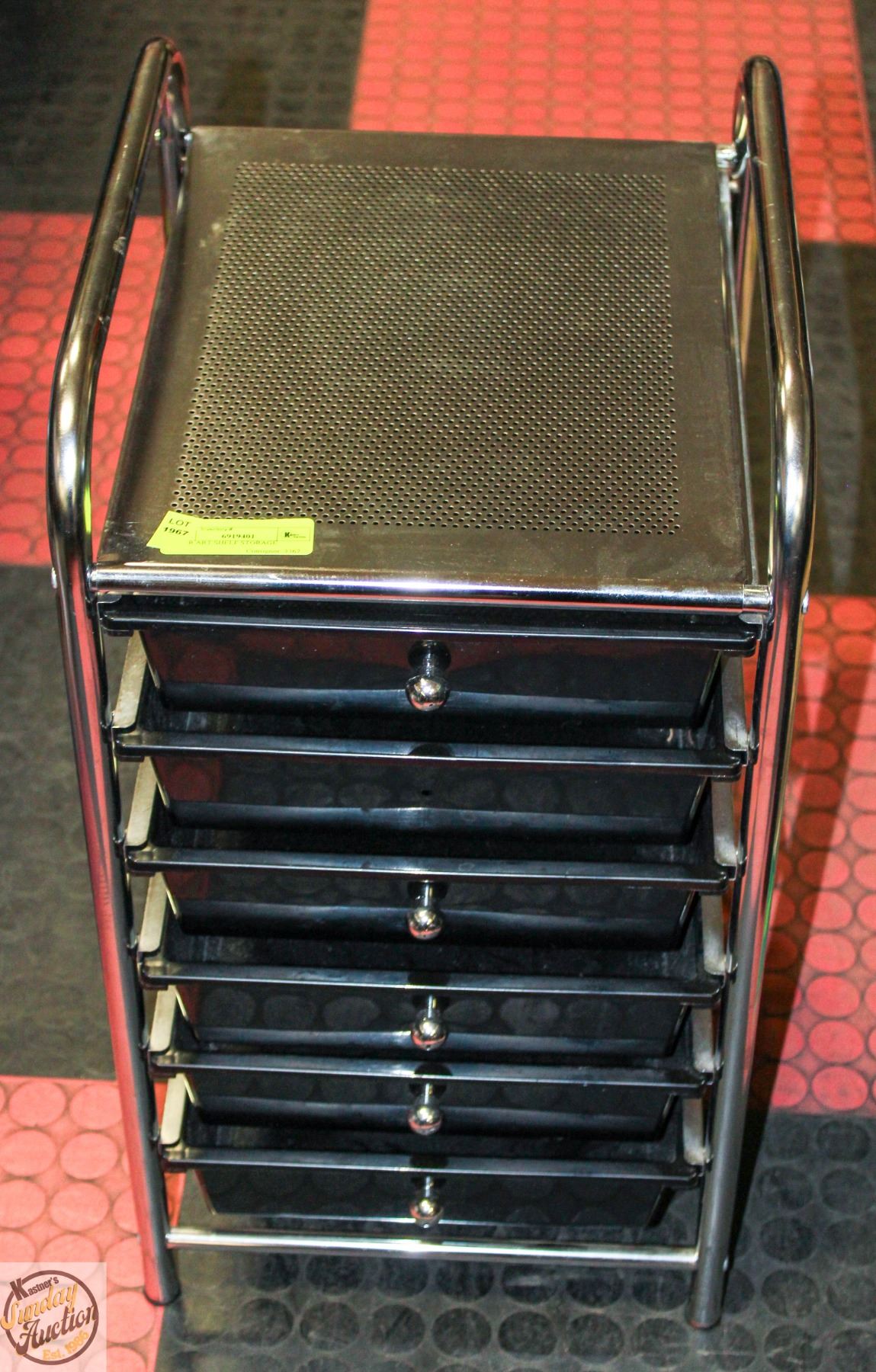 6 TIER ART SHELF STORAGE **ALL ITEMS MUST BE REMOVED BY 5PM SATURDAY, MAY 17TH 2025. ALL REMAINING ITEMS WILL BE SUBJECT TO A $6.00 PER DAY STORAGE CHARGE. ANY ITEMS REMAINING AFTER MONDAY, JUNE 2ND 2025 WILL BE CONSIDERED FORFEITED. NO REFUNDS WILL BE ISSUED FOR FORFEITED ITEMS. TO SCHEDULE A PICK UP APPOINTMENT CLICK HERE