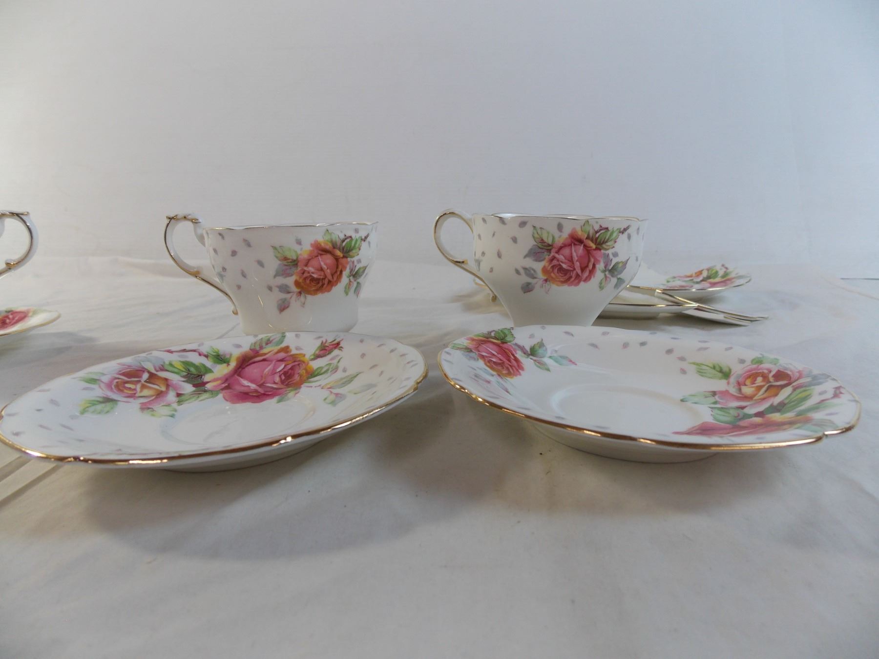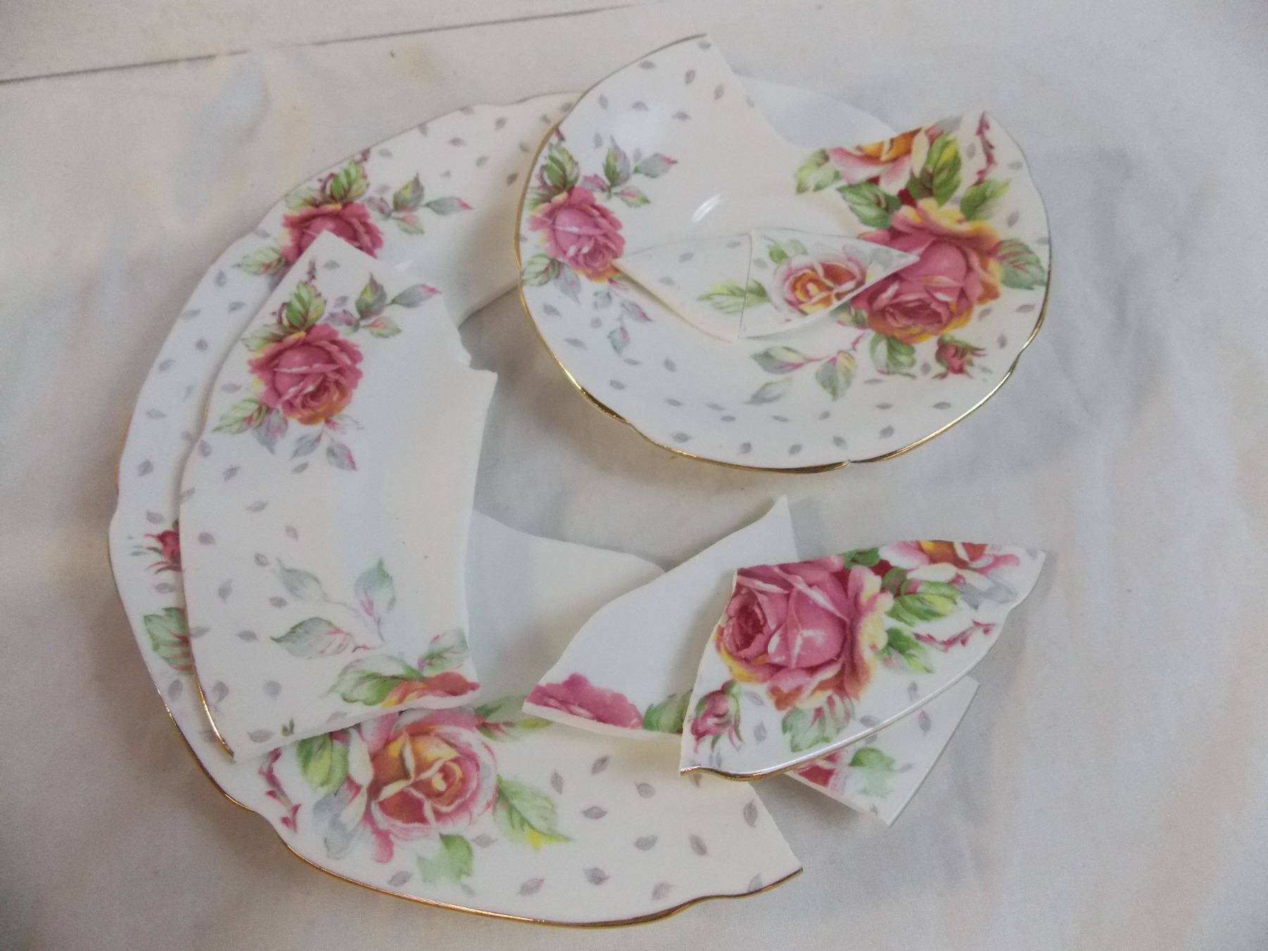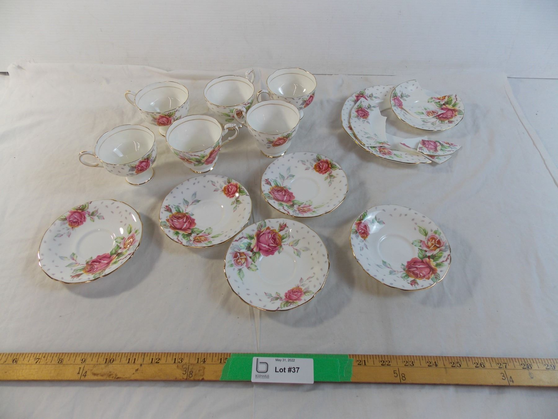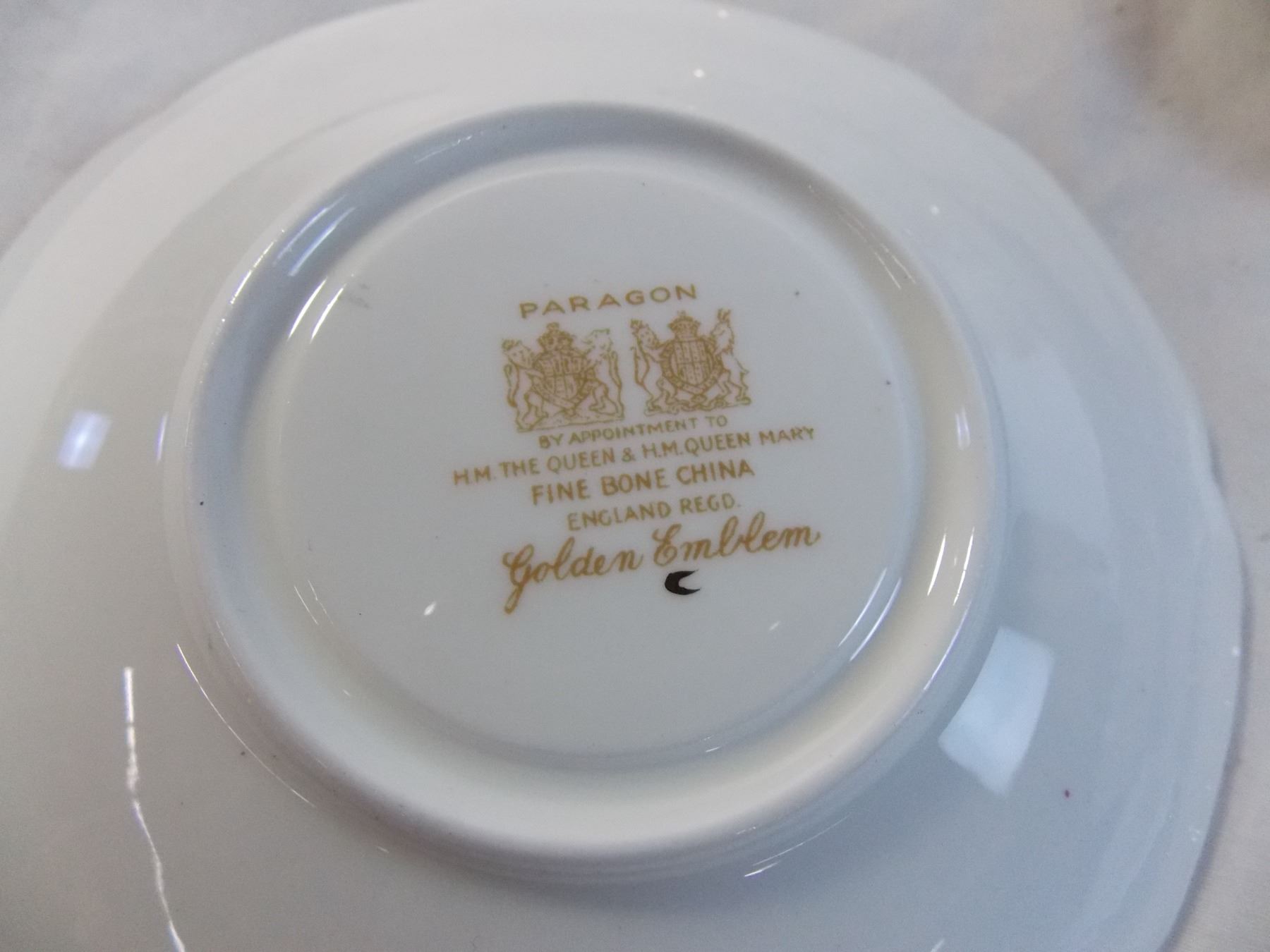 (6) Teacups + (5) plates (different shaped cups/saucers) + broken plate pieces - All Paragon Golden Emblem