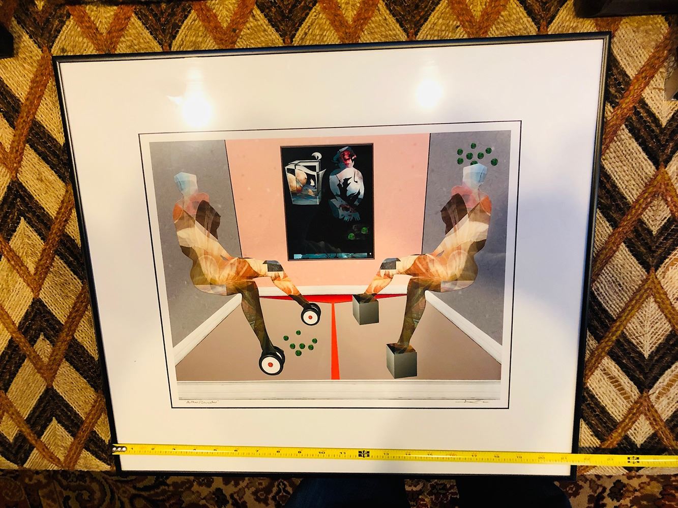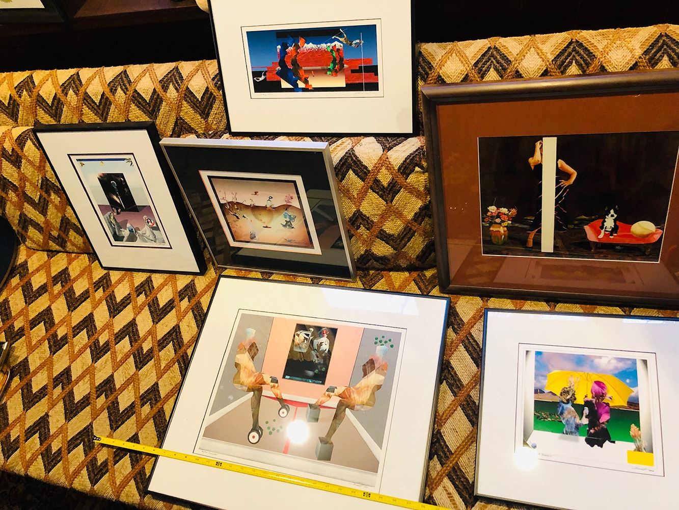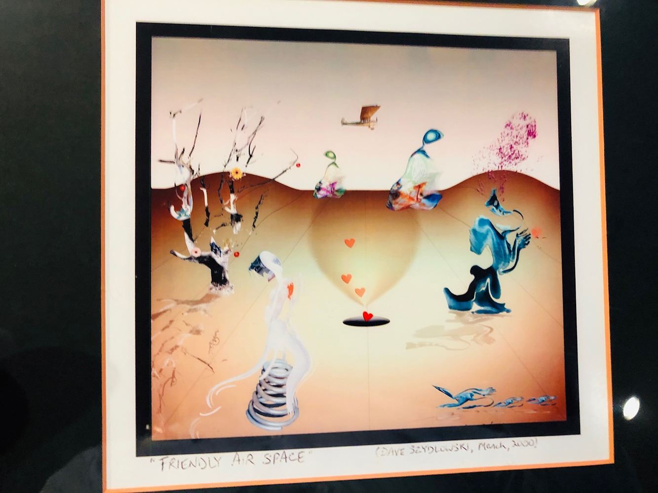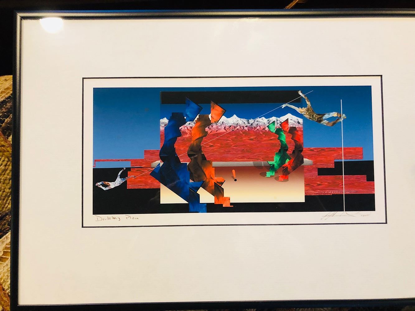 6 Technographic by David Szydlowski, framed and signed by David Szdlowski. Includes: The Cows of Samaria, Mother/Daughter, Third Day, Friendly Air Space, Darl=ling Plain A Farmington Valley, CT native, David Szdlowski came alive on the art scene in the late 1990-2000 with showings in the Farmington Valley, CT area and the Wadsworth Anthenium, he also had a gallery in New York City. A modern artist who was known for his prolific work in a style celibrated as Cerebral Art. He seems to have left the art world behind in the early 2000's, as there is no record of his work dating past 2002. A very limited number of his works can now be found on the marketplace, and this piece is from a private collection of Peter DeLeone. Featured in artist's catalog and originally sold for over $10,000. pd estate