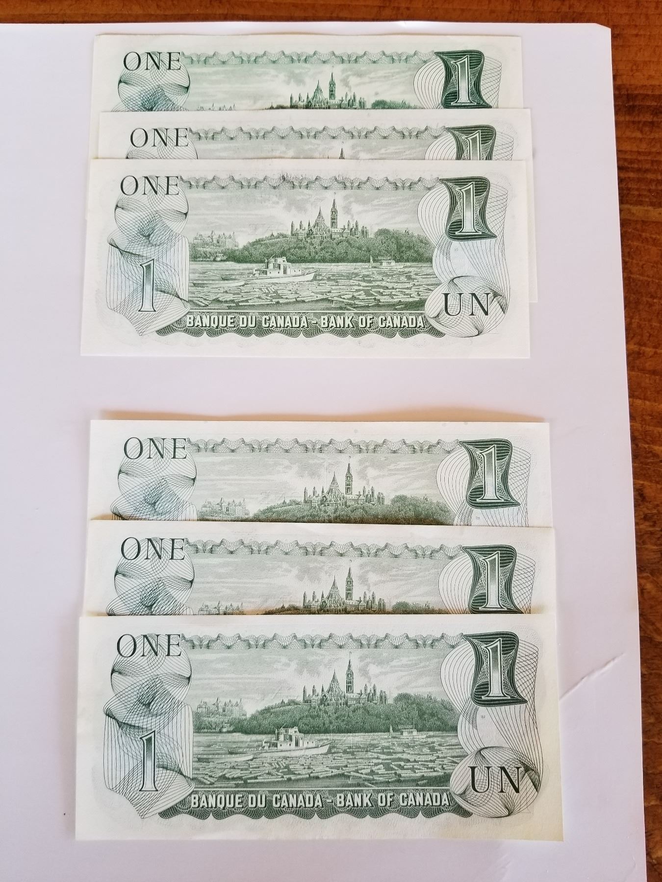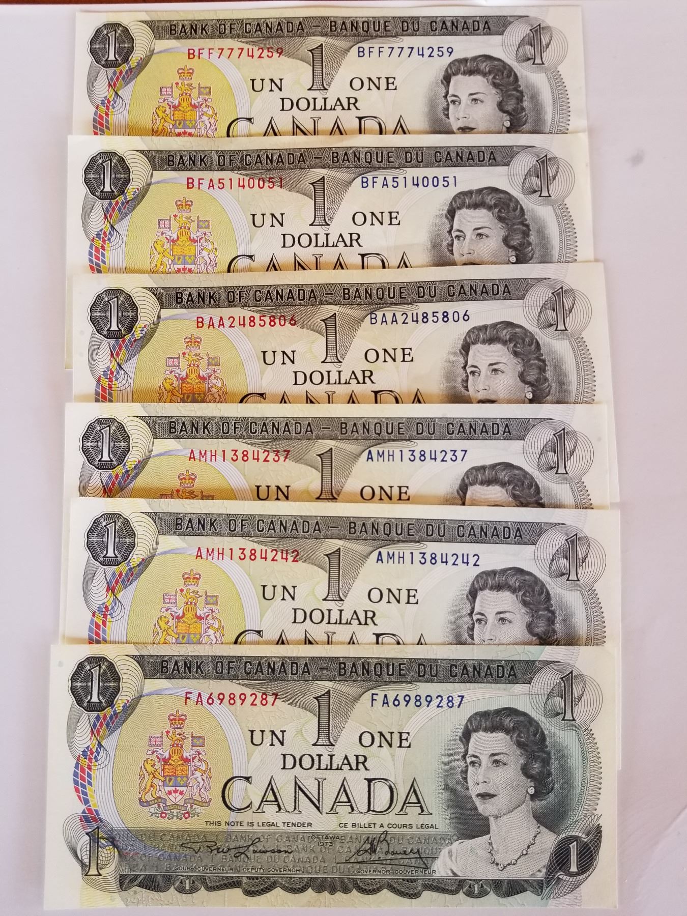 6- UNC 1973 One Dollar Bills