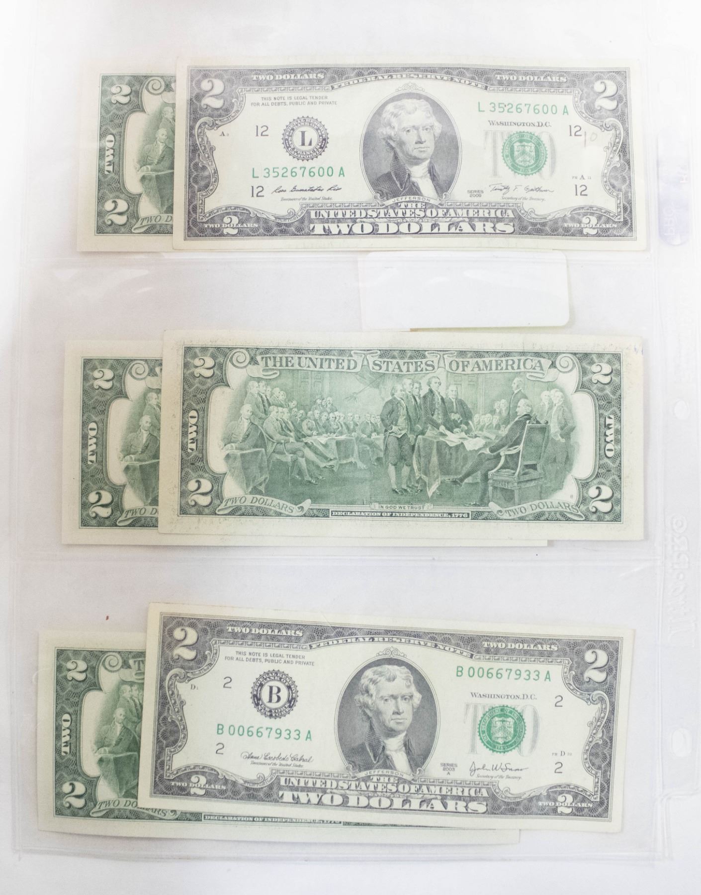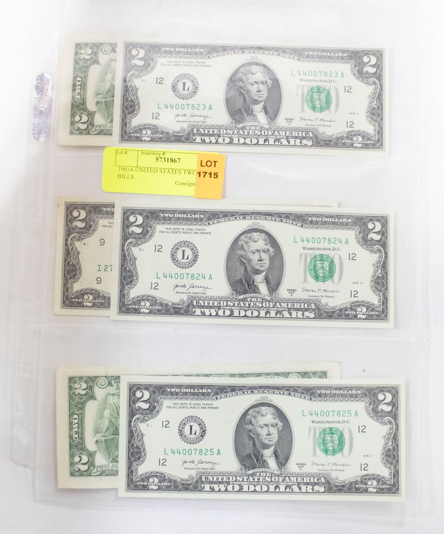 6 UNITED STATES TWO DOLLAR BILLS