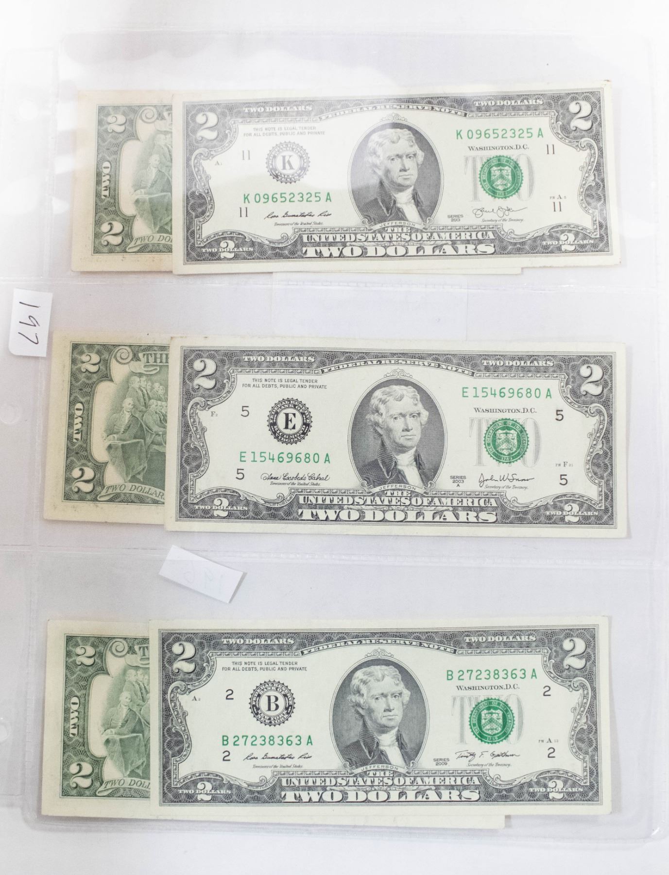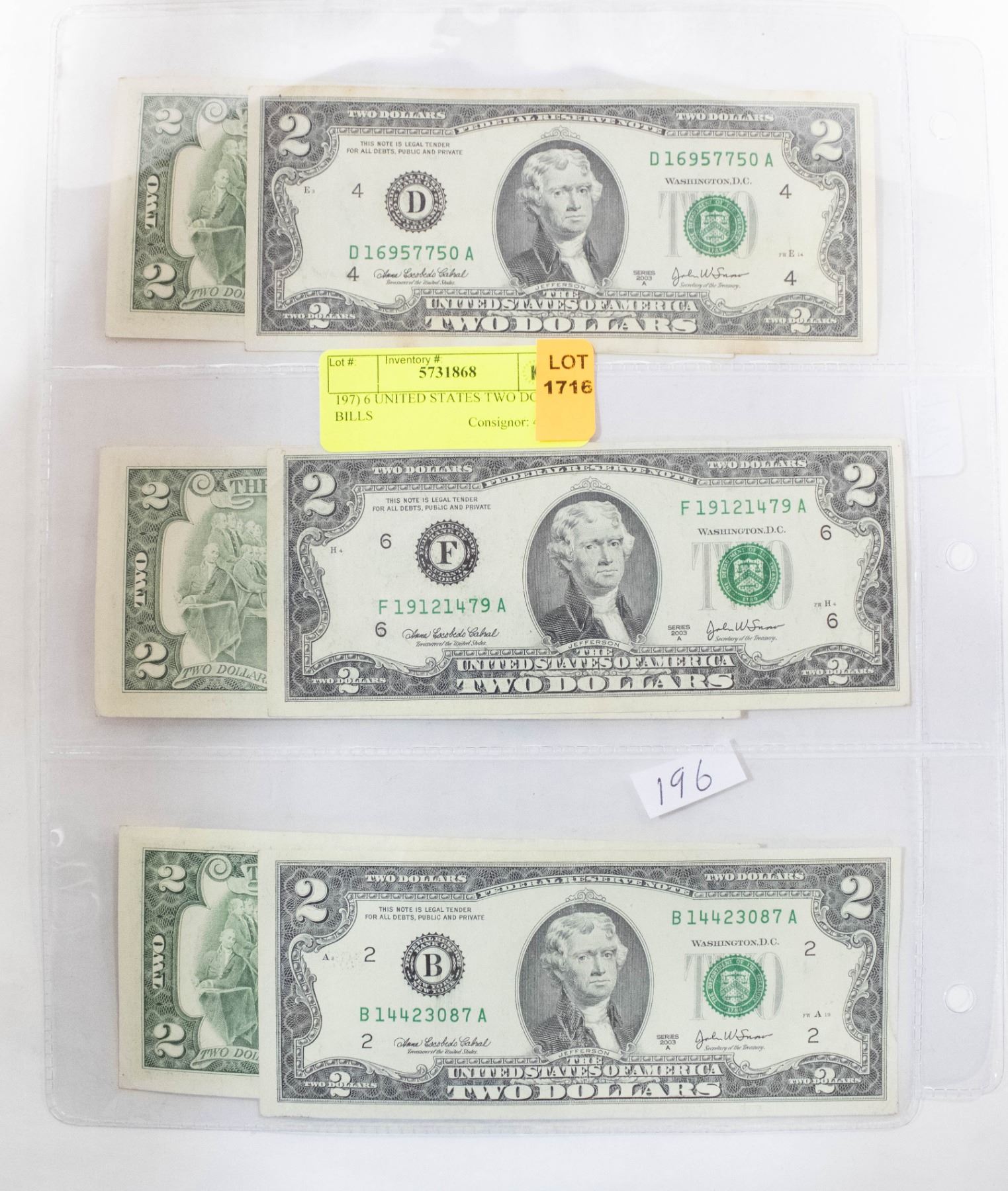 6 UNITED STATES TWO DOLLAR BILLS