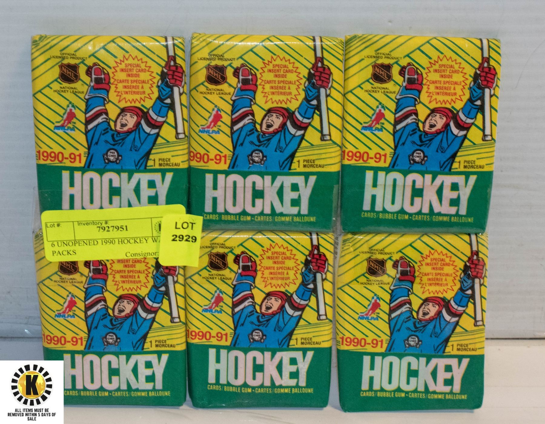 6 UNOPENED 1990 HOCKEY WAX PACKS