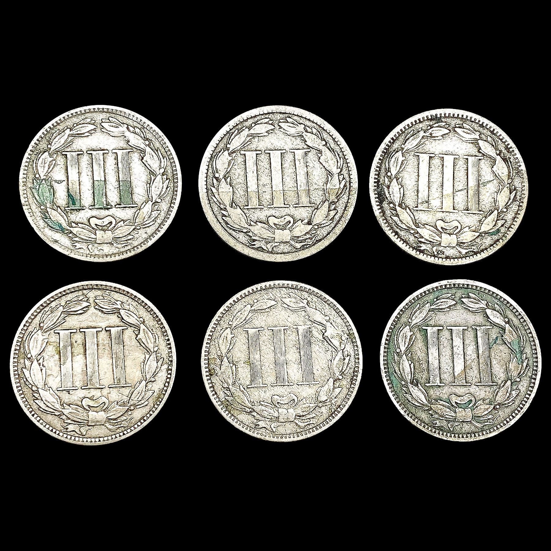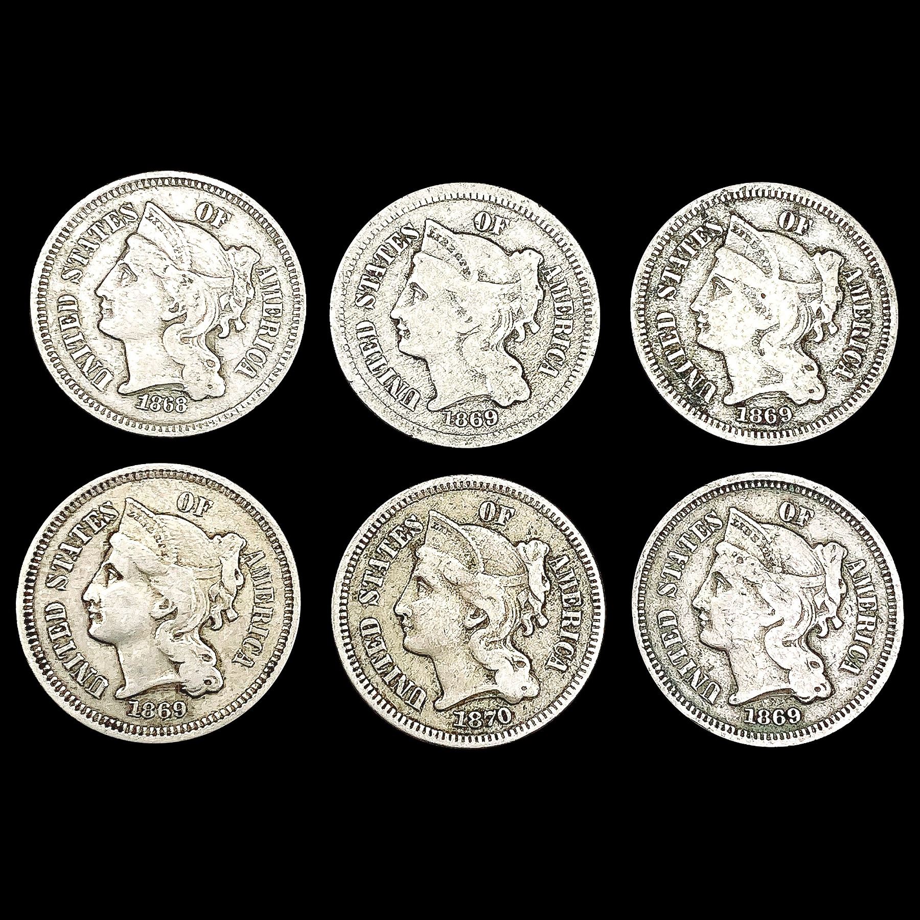 [6] US 3 Cent Nickels [1868, [4] 1869, 1870] HIGH