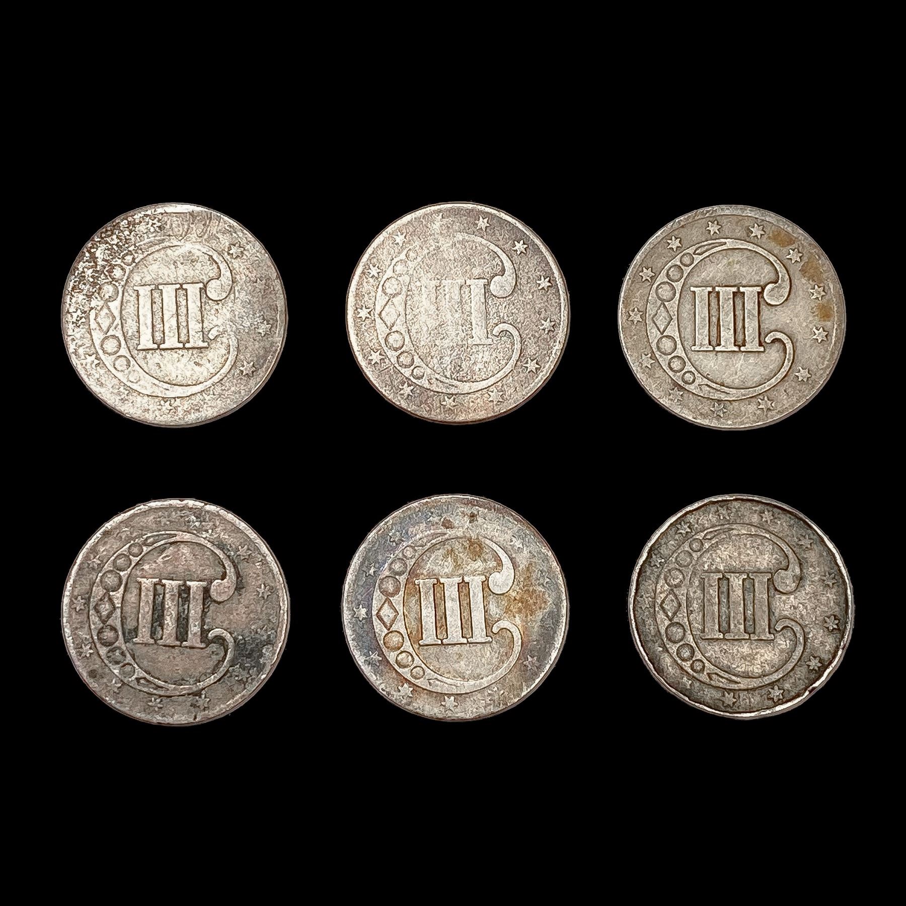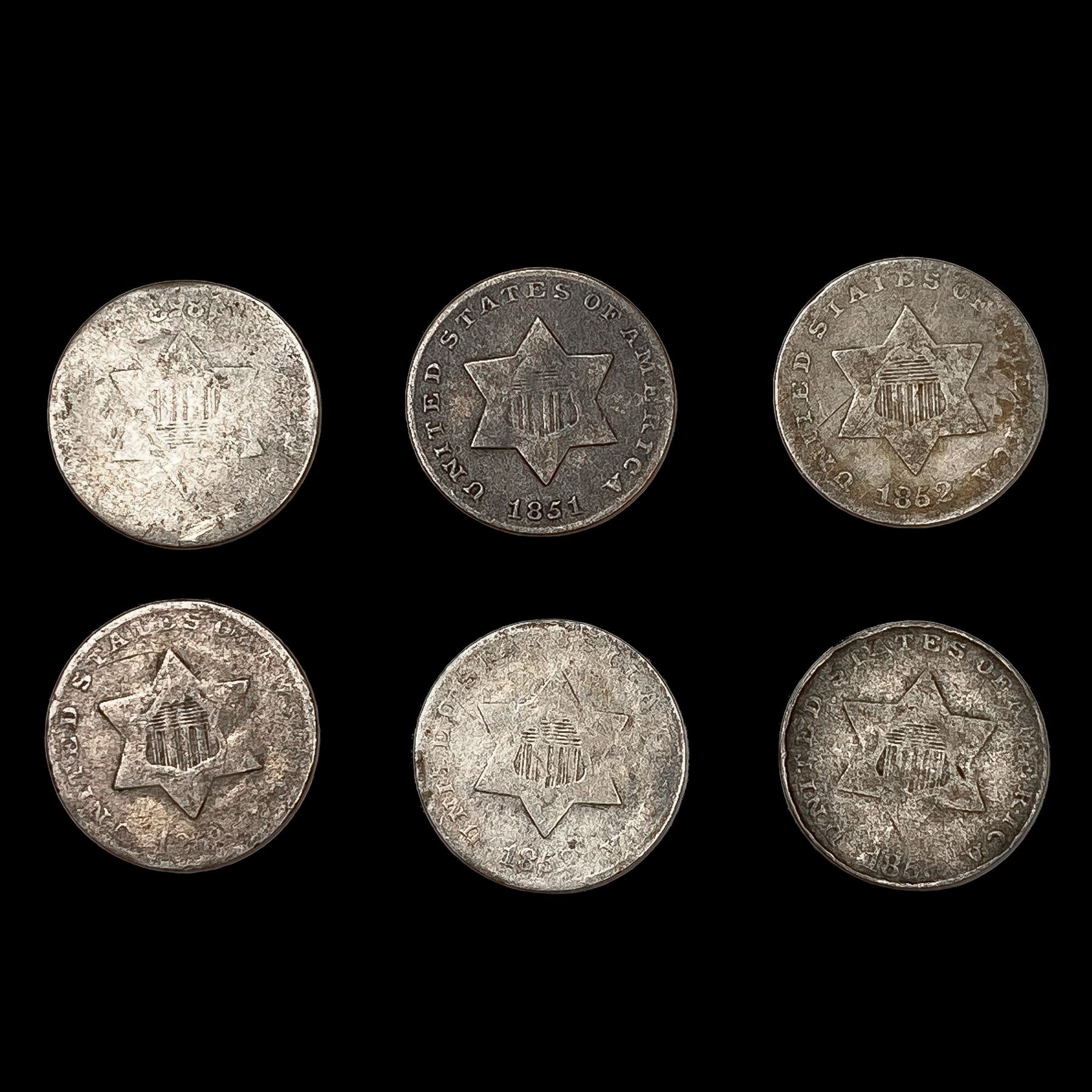 [6] US Silver 3 Cents (1851, (2) 1852) NICELY CIRC