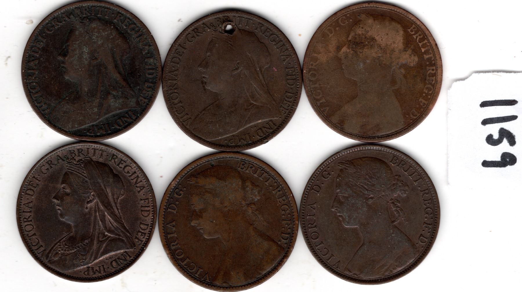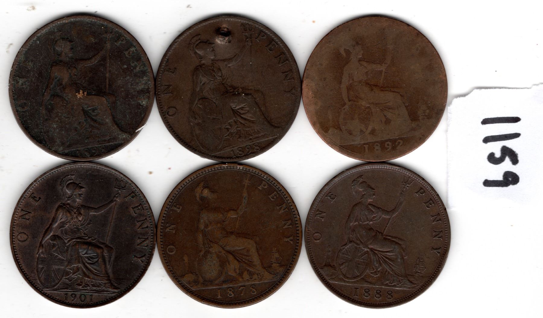 6 VICTORIAN BRITISH PENNIES 1878-1901