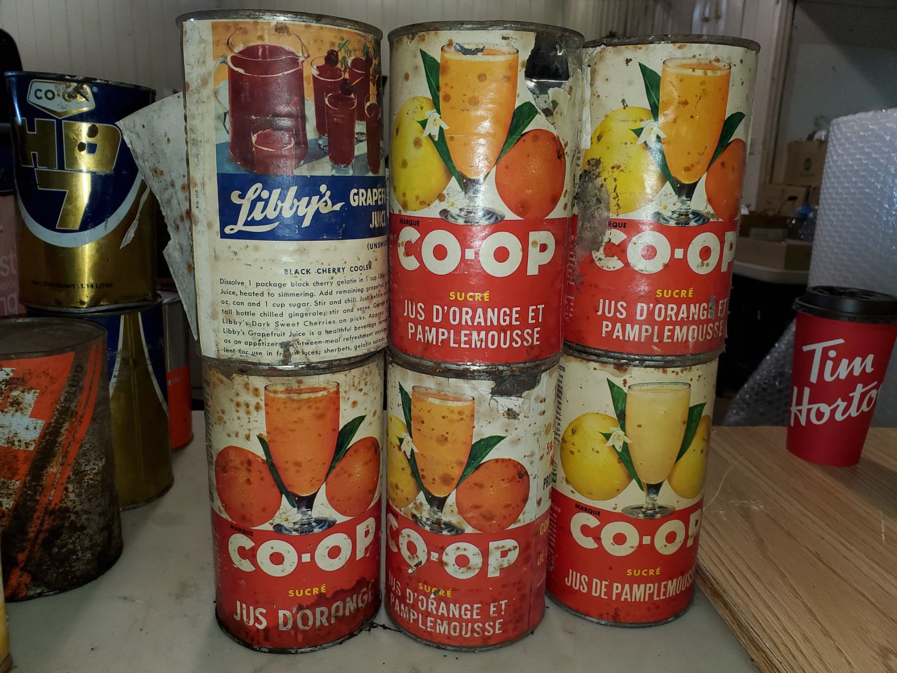 (6) VINTAGE FRUIT TINS (5 CO-OP, 1 LIBBEY)