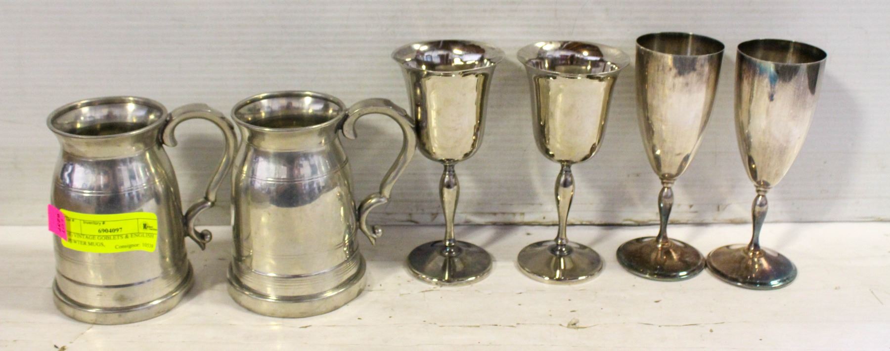 (6) VINTAGE GOBLETS & ENGLISH PEWTER MUGS,