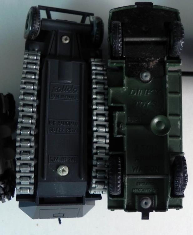6 VINTAGE MILITARY WWII VEHICLES & PLANE-DIE CAST---TANK-PLANE-TRUCK JEEP-GERMAN CAMO TANK-SMALL JEEP-NAZI JEEP TRACK & WHEELS-5 IN ON TANK (US) 5" WINGSPAN ON PLANE-OTHERS SMALLER