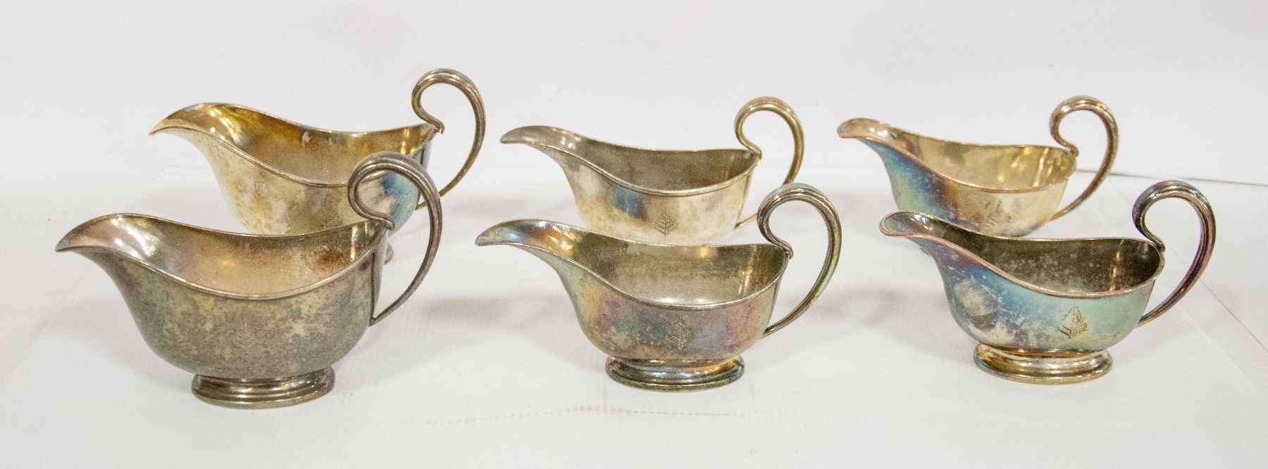 6 VINTAGE SILVER PLATED HOTELWARE GRAVY SERVERS
