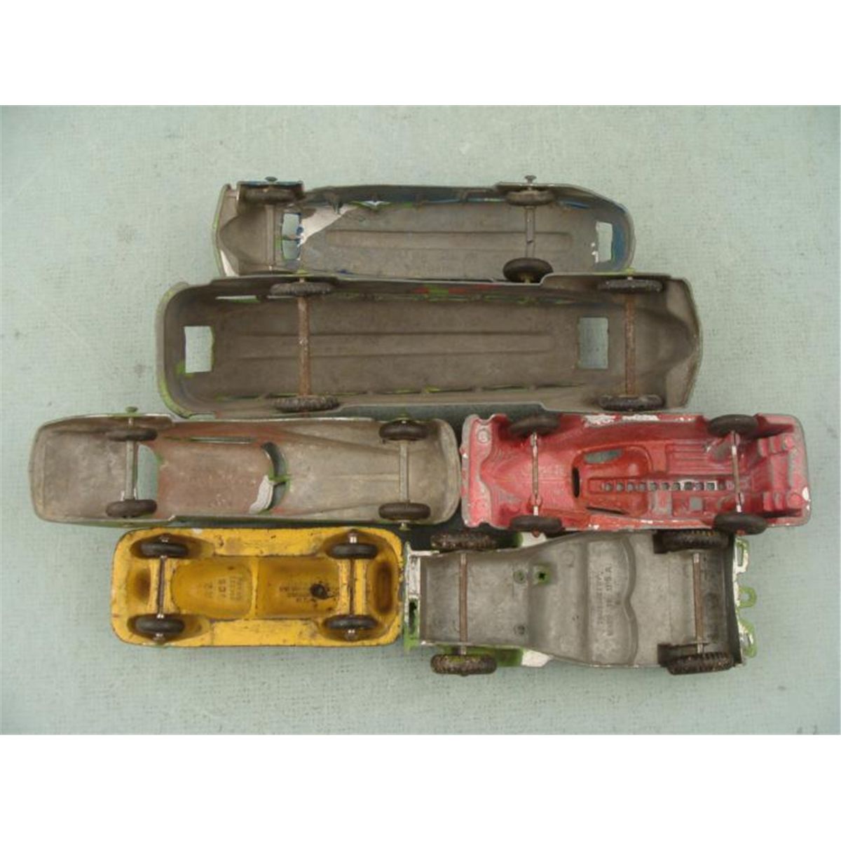 6 VINTAGE TOY CAST/RUBB VEHICLES-SUN,TOOTSIETOY,MANOIL