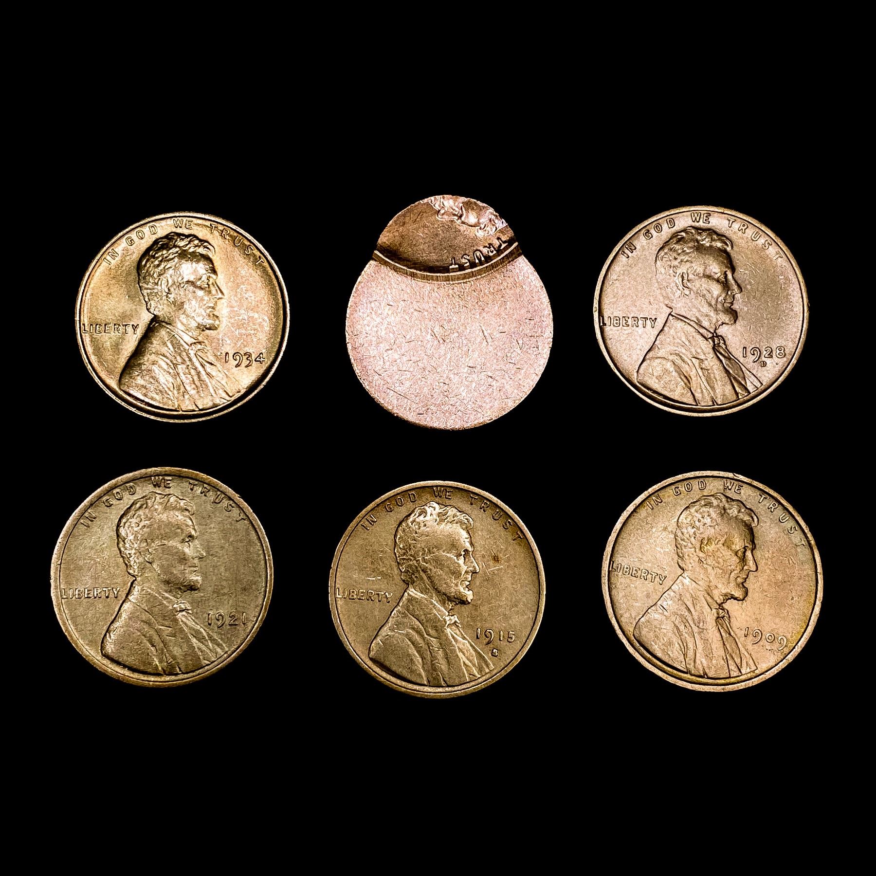 (6) Varied US Cents (1909, 1915-S, 1921, 1928-D, 1
