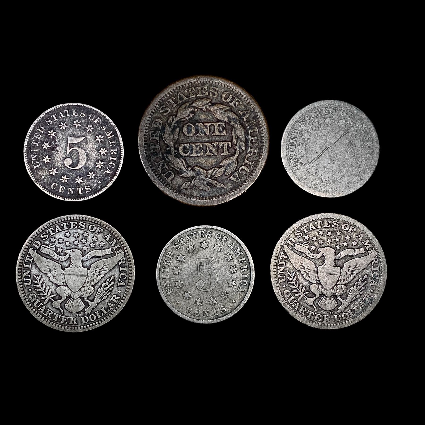 [6] Varied US Coinage (1851, 1867, (2) 1882, 1908-