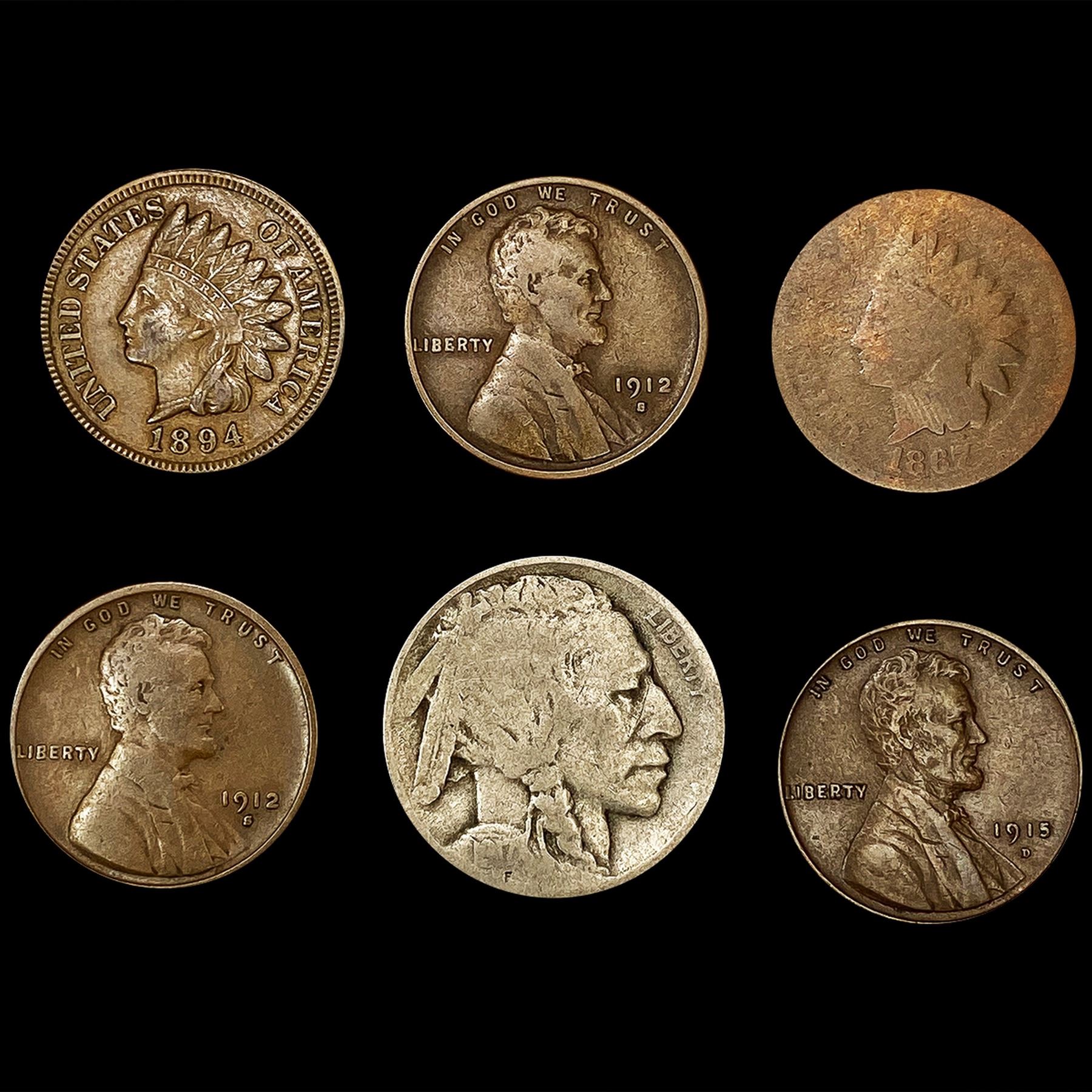 (6) Varied US Coinage (1867, 1894, (2) 1912-S, 19