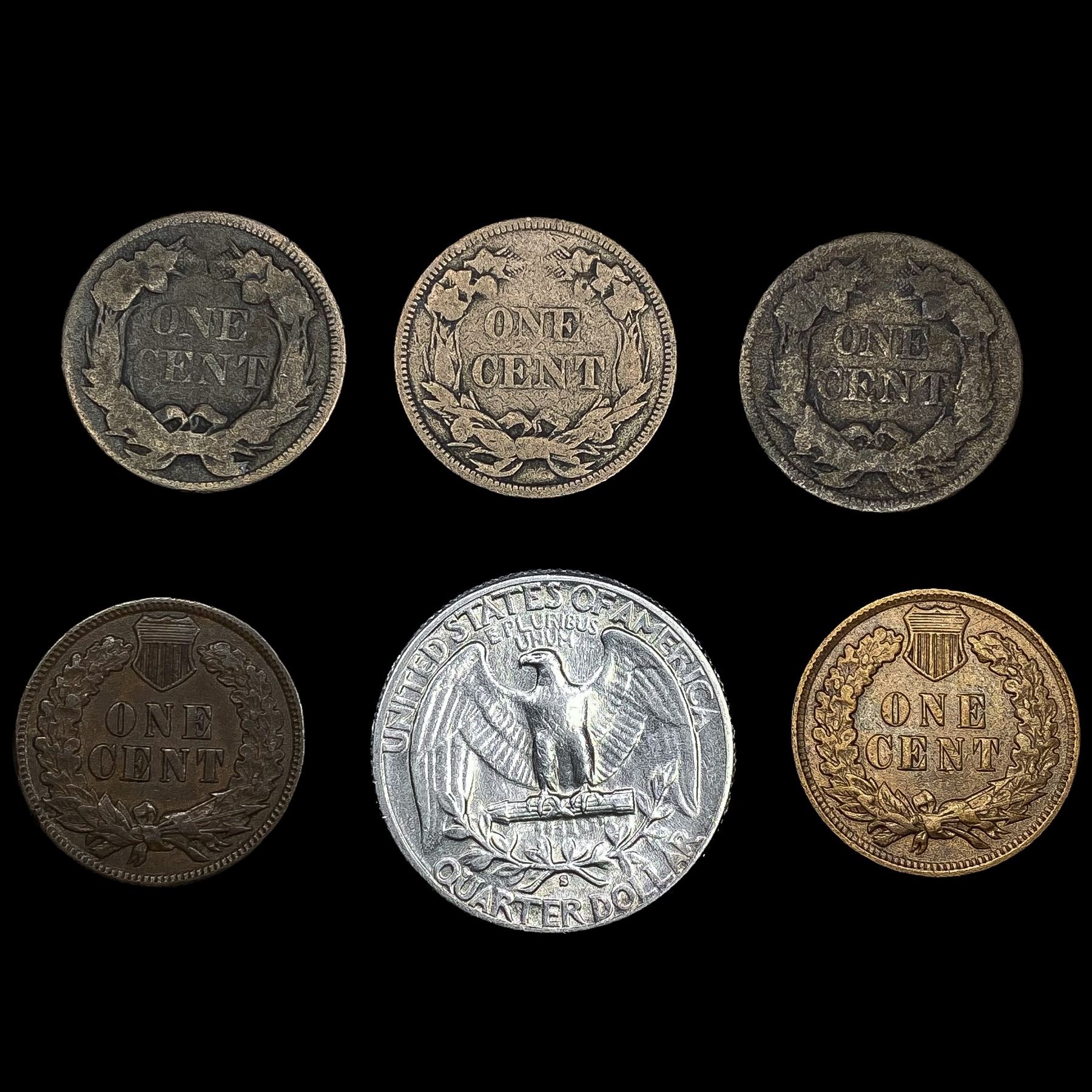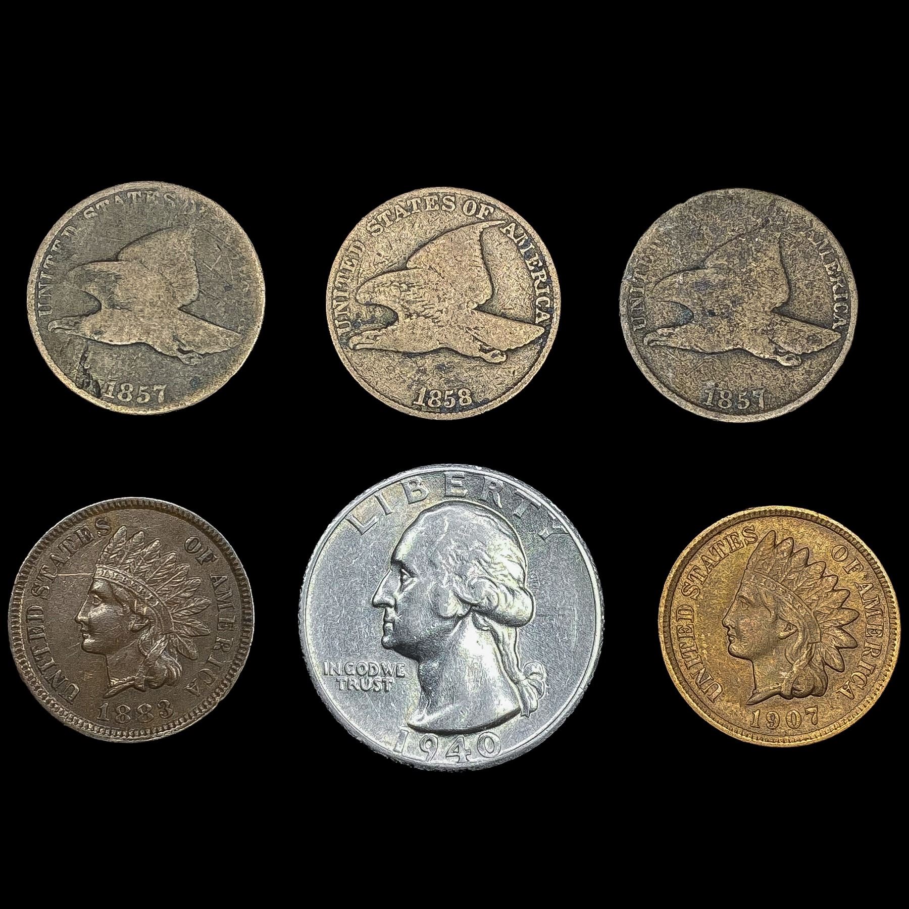 (6) Varied US Coinage ((2) 1857, 1858, 1883, 1907,