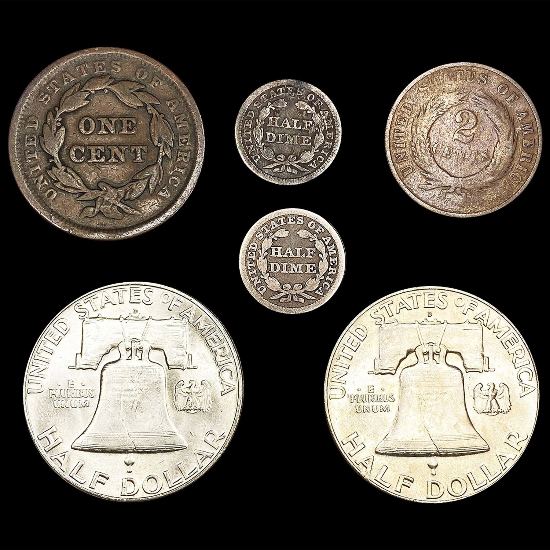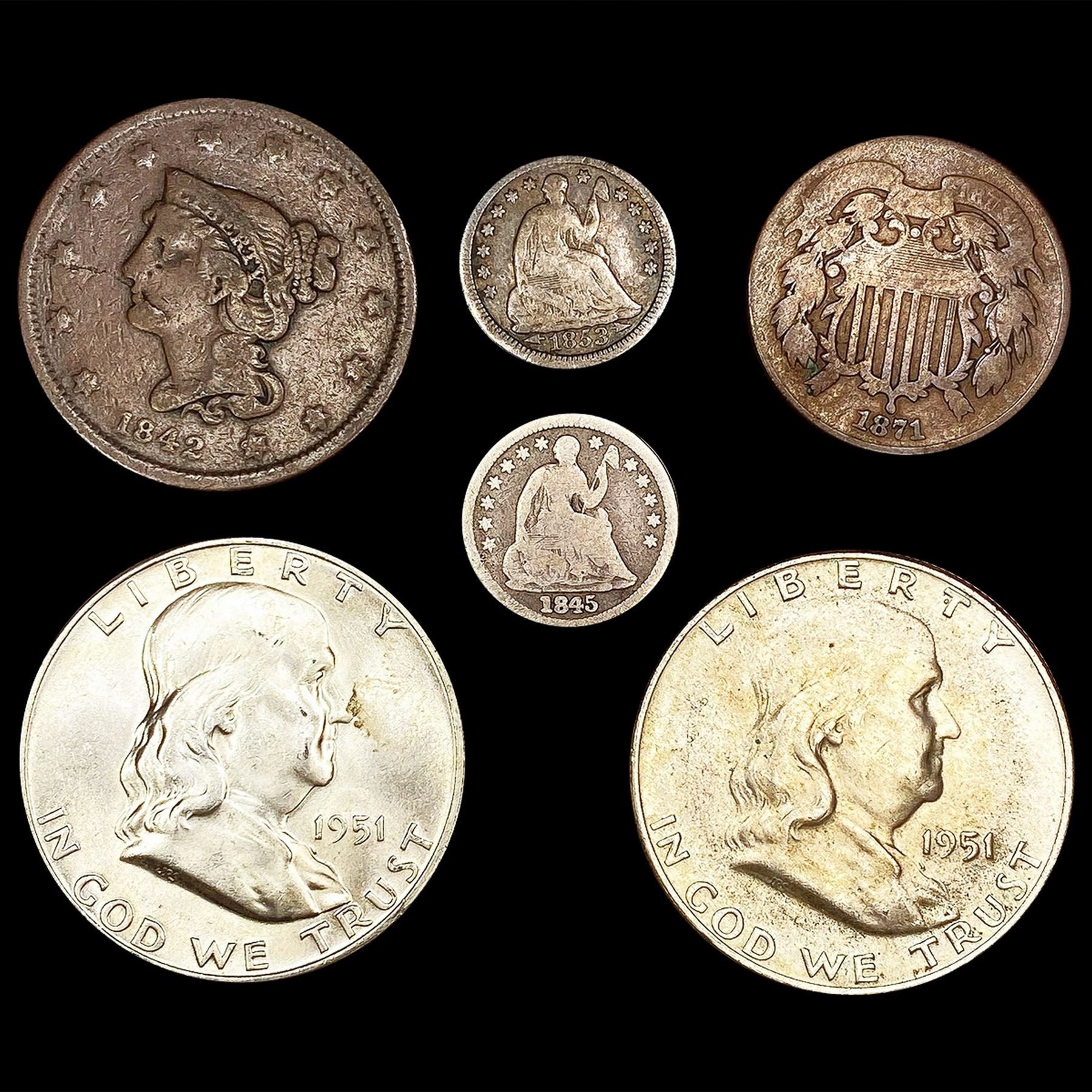 (6) Varied US Coins (1842, 1842, (2) 1951-D, 1853