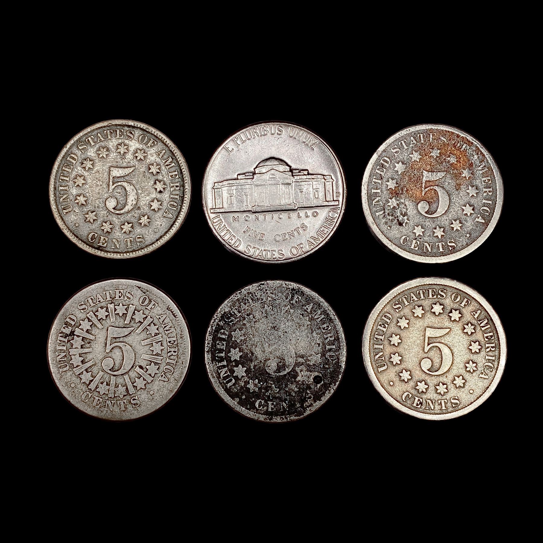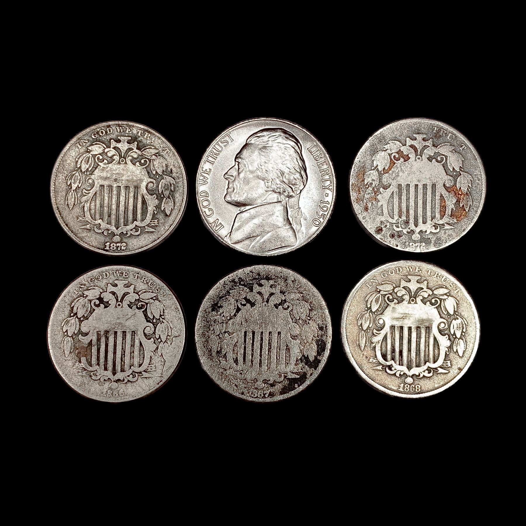 [6] Varied US Nickels (1866, 1867, 1868, (2) 1872, 1950-D) HIGH GRADE