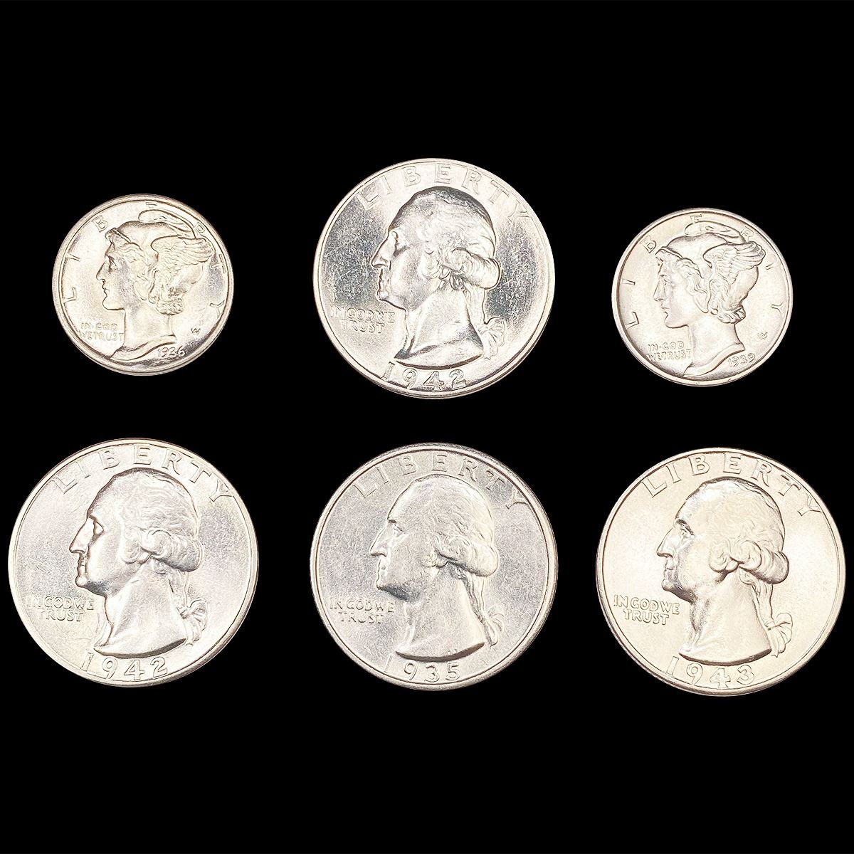 (6) Varied US Silver Coinage (1935, 1936, 1939-D,