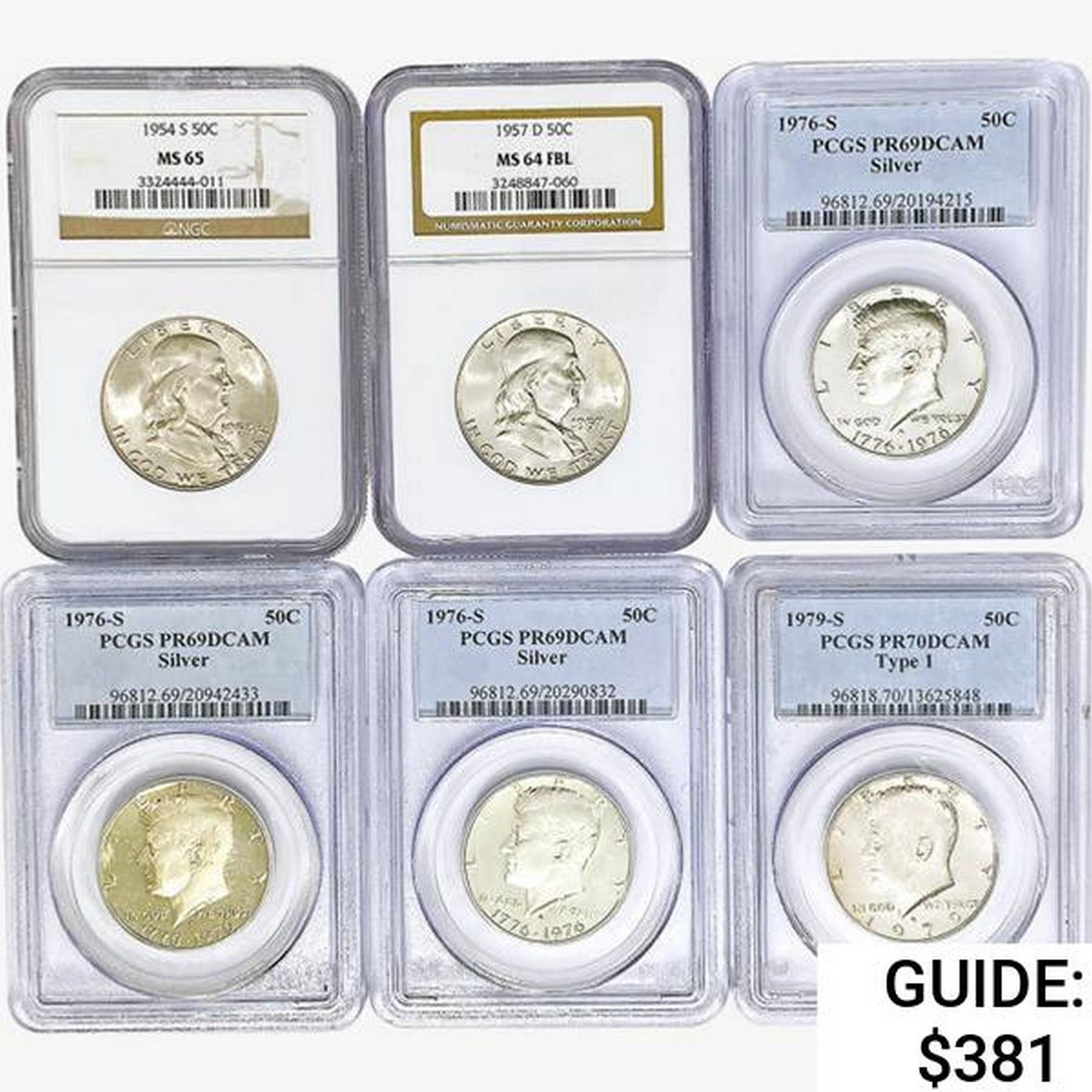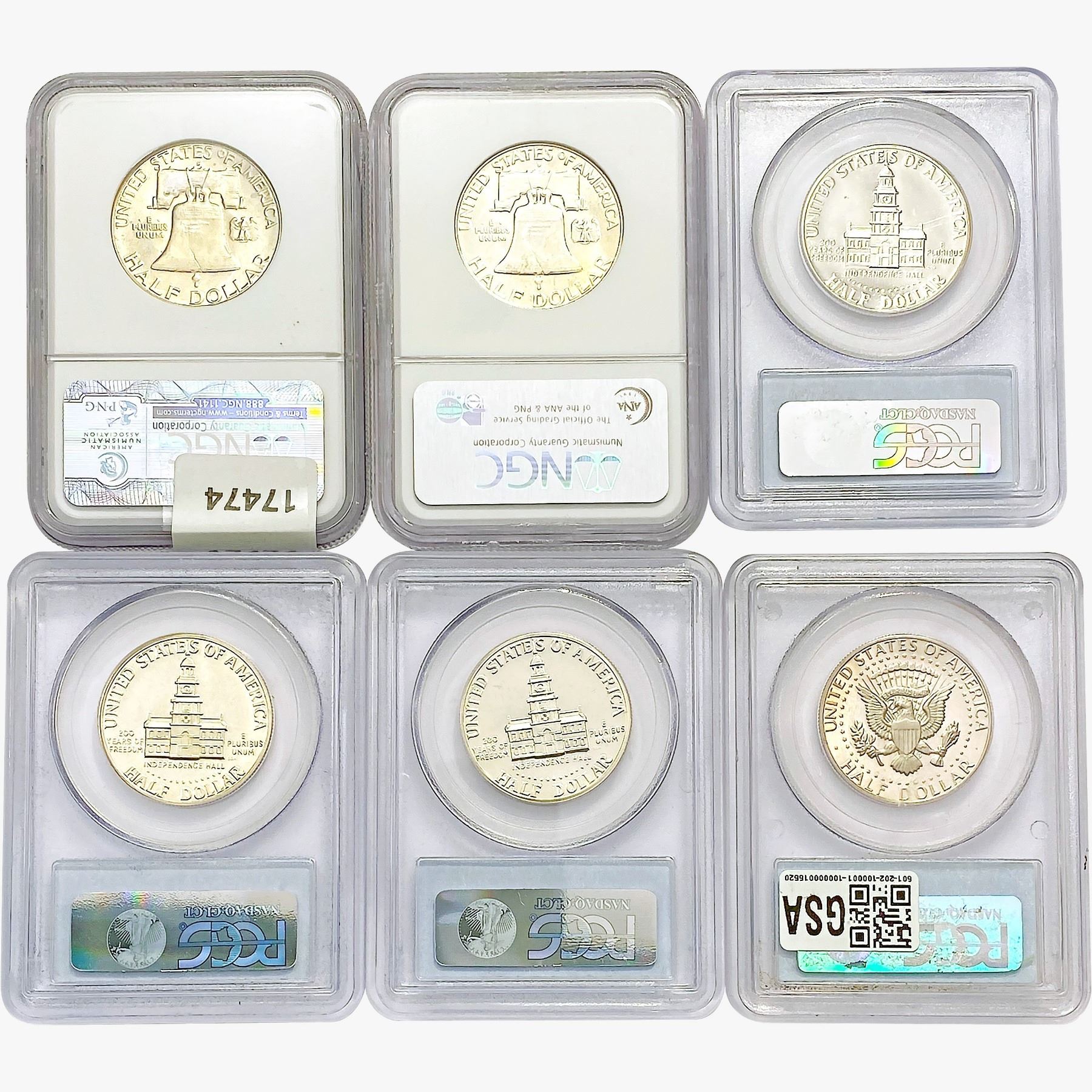 [6] Varied US Silver Half Dollars PCGS/NGC PF/MS64