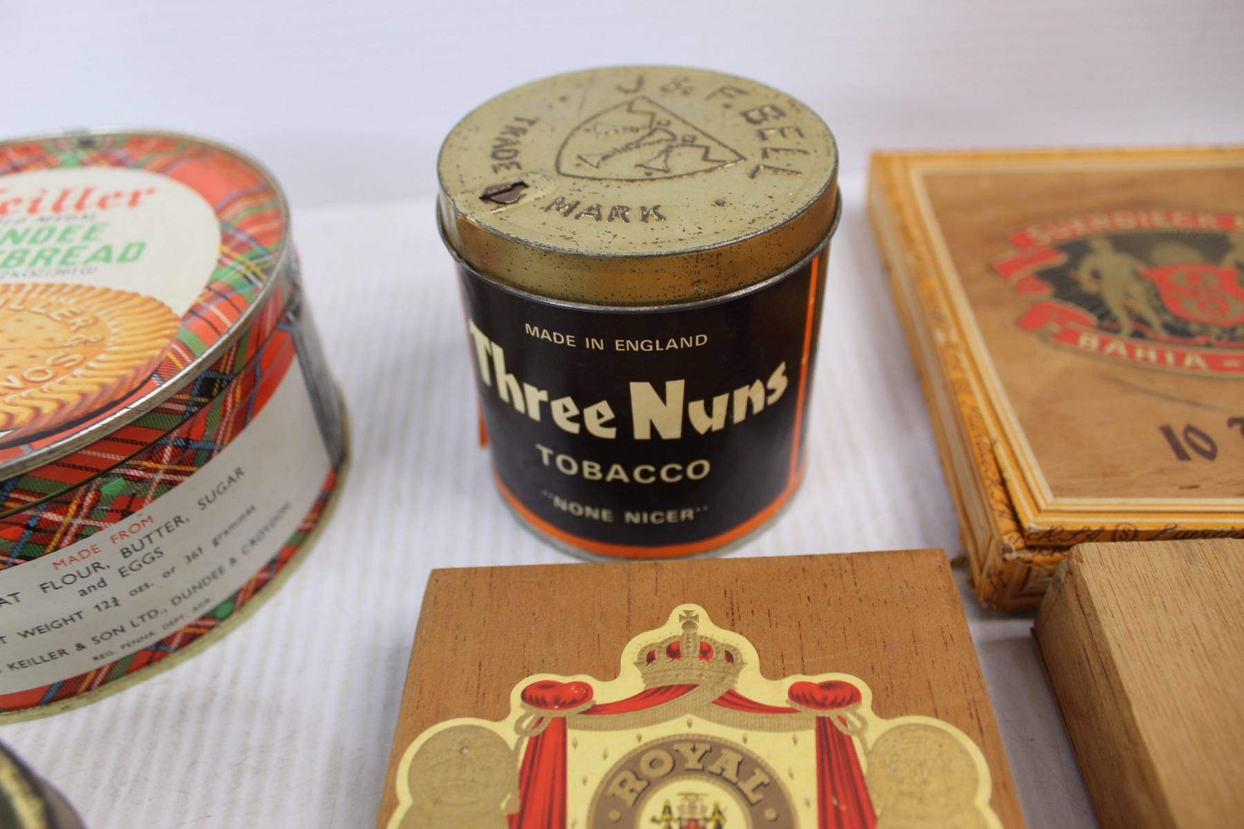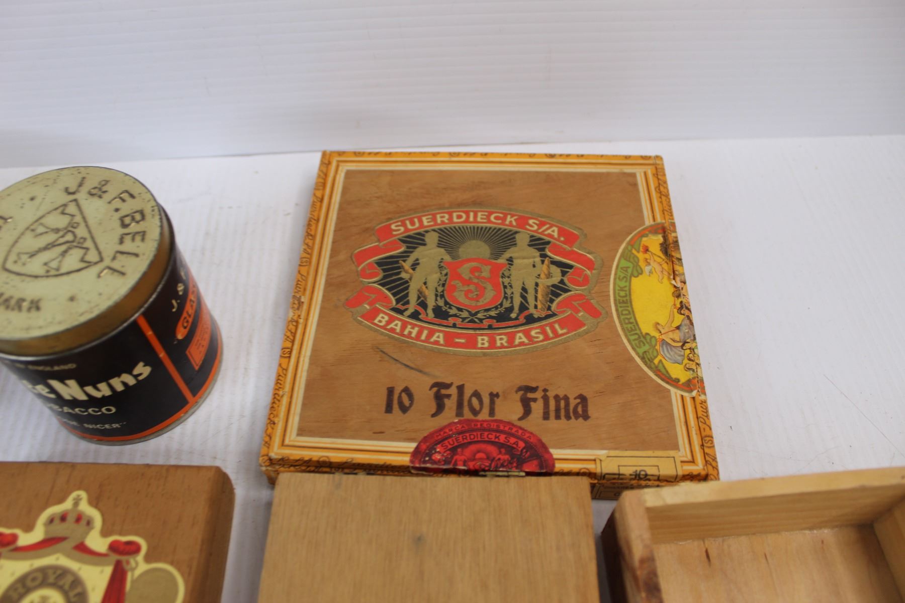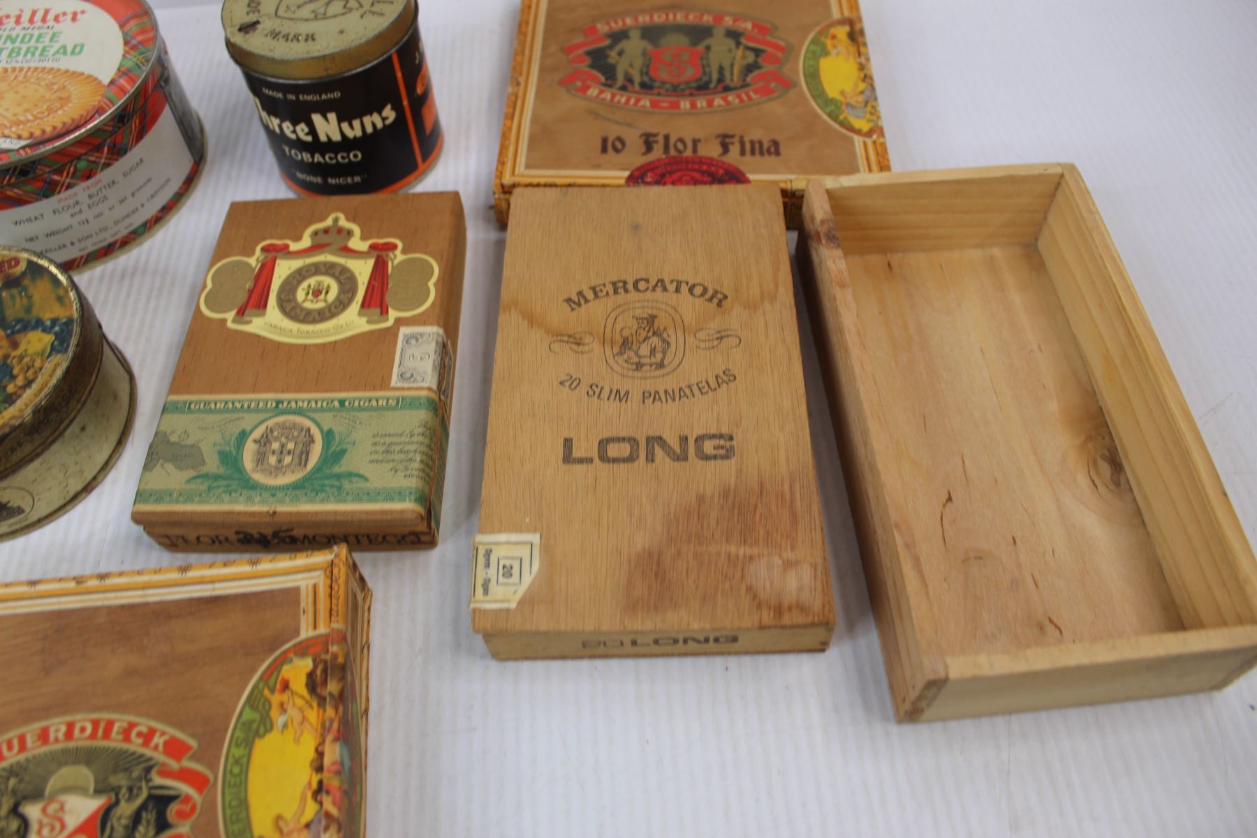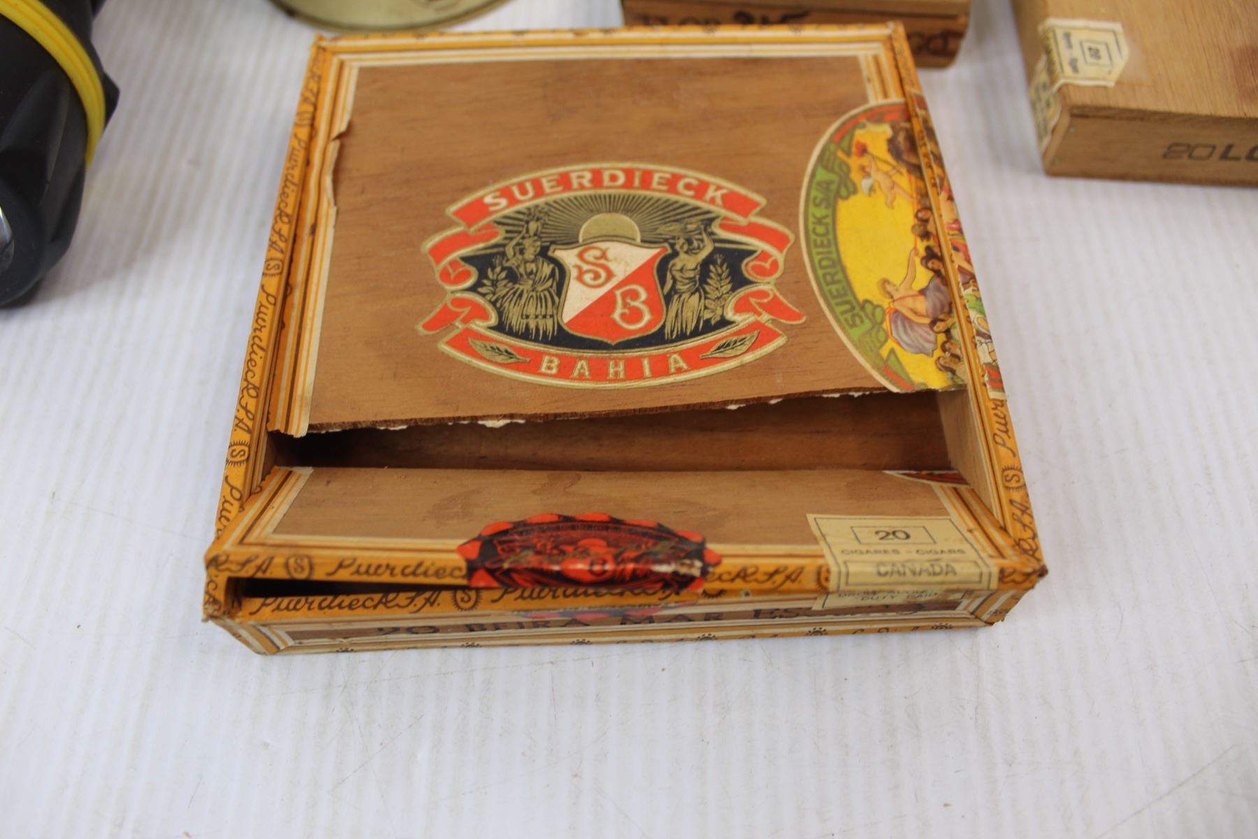 (6) Various Tins/ Cigar Boxes- (1) Is Damaged , Greatlite Flash Light- Powers on