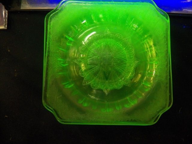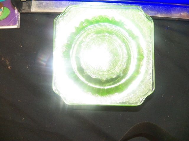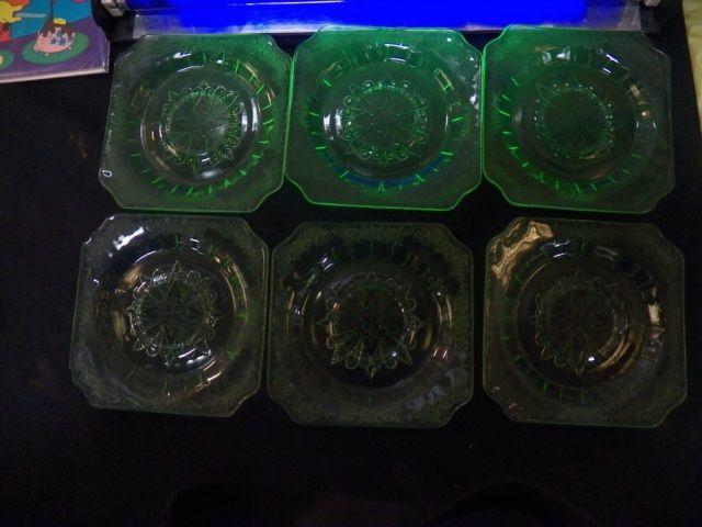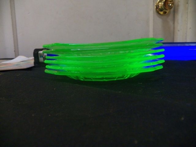 6-Green Glass Vaseline Saucers approx. 6" x 6"