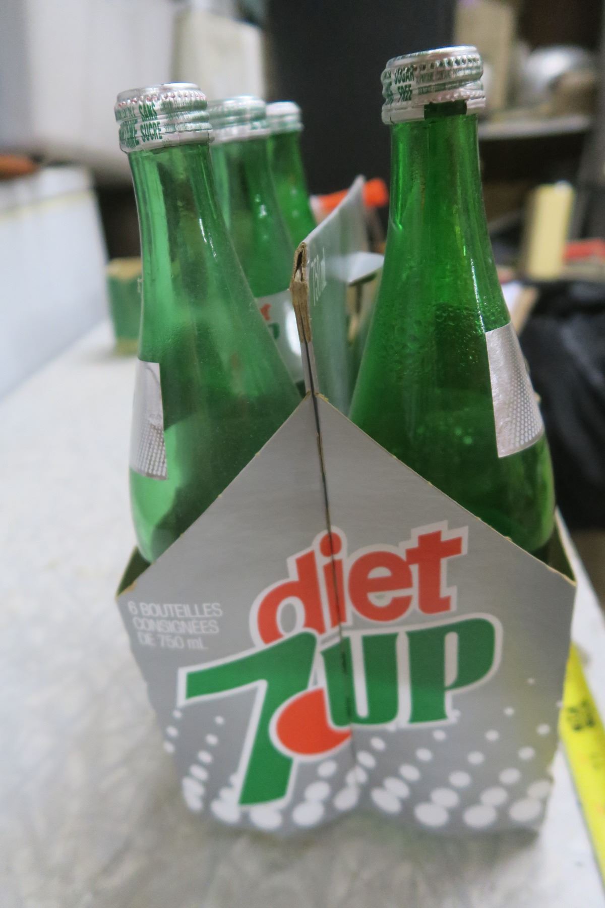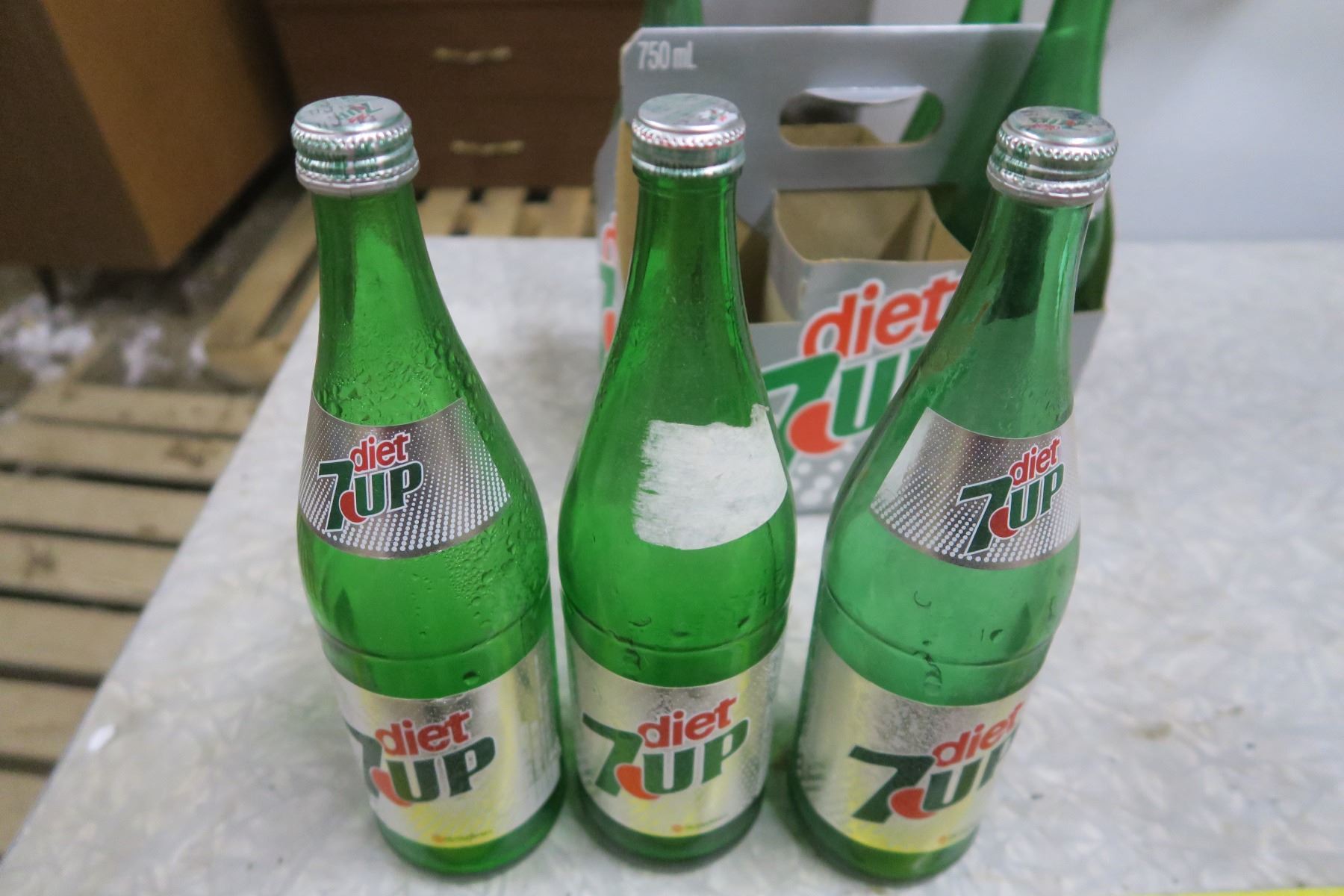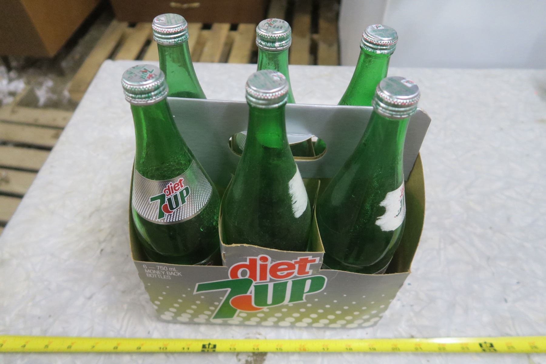 6 Vintage 750ml Diet 7-Up Bottles in Cardboard Diet 7-Up Carry Case